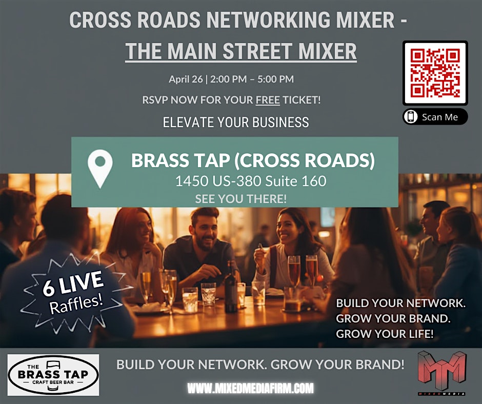 by admin27Feb The Main Street Mixer at 11450 US-380 suite 160 – Cross Roads, TX The Main Street Mixer at 11450 US-380 suite 160 – Cross Roads, TX 2 2 people viewed this event. Join us at The Main Street Mixer for great vibes, tasty bites, and new friends in a chill, local hangout! Tickets-RSVP Link Date And Time Sunday, April 26th, 2026 @ 02:00 PM Location 11450 U.S. 380, Cross Roads, TX 76227 Event Types Community & CultureParty or Social Gathering Event Category Texas Share With Friends Facebook Twitter Linkedin Xing Pinterest Share This Post:
