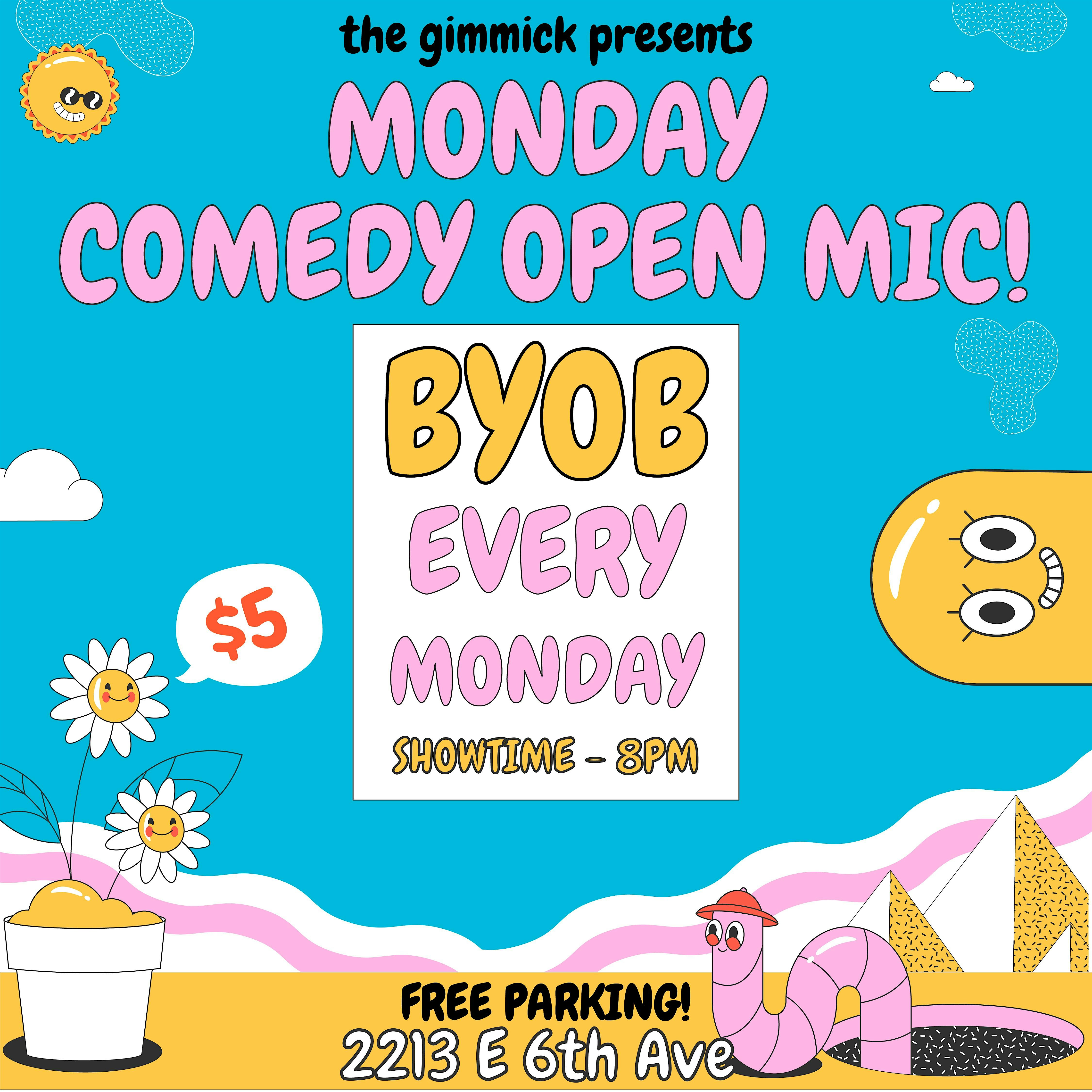 MONDAY COMEDY OPEN MIC @ THE GIMMICK at The Gimmick – Tampa, FL MONDAY COMEDY OPEN MIC @ THE GIMMICK at The Gimmick – Tampa, FL 4 4 people viewed this event. Shhh! It’s a secret comedy show! Come check out some of Tampa’s best comics! BYOB! Tickets-RSVP Link Register for event Date And Time Monday, April 27th, 2026 @ 08:00 PM Location The Gimmick 2213 East 6th Avenue, Tampa, FL 33605 Event Types Concert or PerformancePerforming & Visual Arts Event Category FloridaTampa Share With Friends Facebook Twitter Linkedin Xing Pinterest