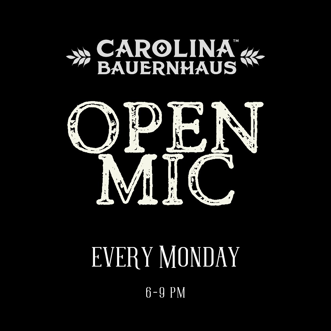 Carolina Bauernhaus Brewery & Winery hosts the Upstate’s longest running musical open mic every Monday 6-9 PM. Musicians, singer / songwriters, poets, comedians, storytellers, and other performers are encouraged to join us on stage.