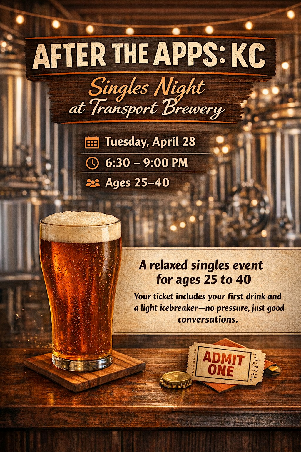 Tired of dating apps? Join us for a relaxed, in-person singles night at Transport Brewery in Shawnee!