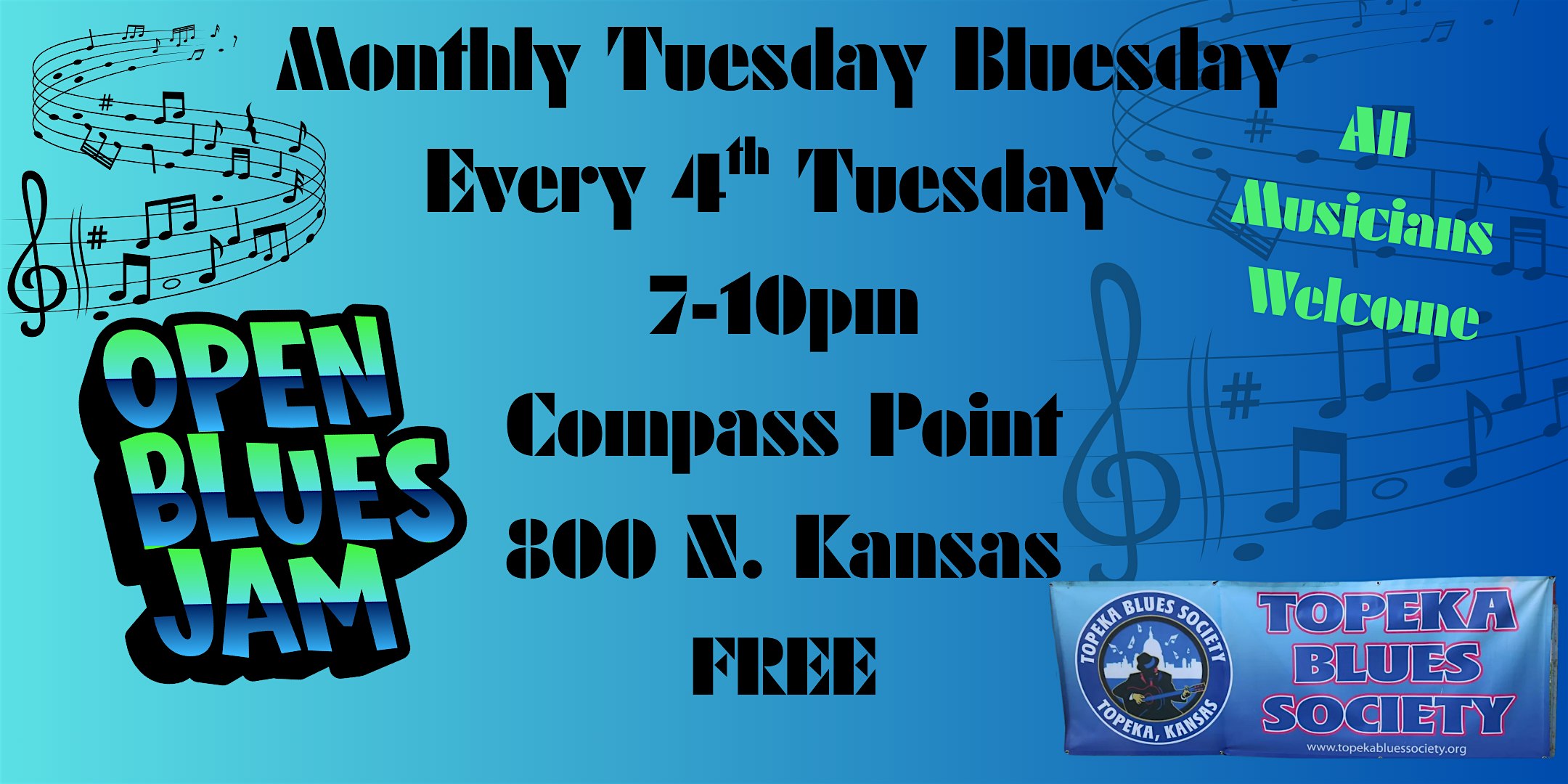 Join Compass Point, home of Dirty Girl Adventures and the Topeka Blues Society, for the TUESDAY BLUESDAY OPEN JAM!