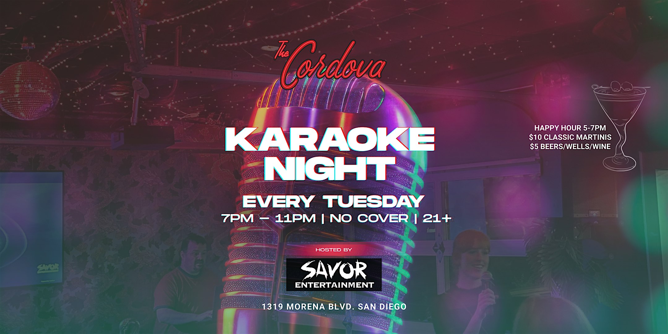 Tuesday Karaoke Night w/ Happy Hour 5-7pm. at The Cordova Bar, Morena Boulevard, San Diego, CA, USA – San Diego, CA