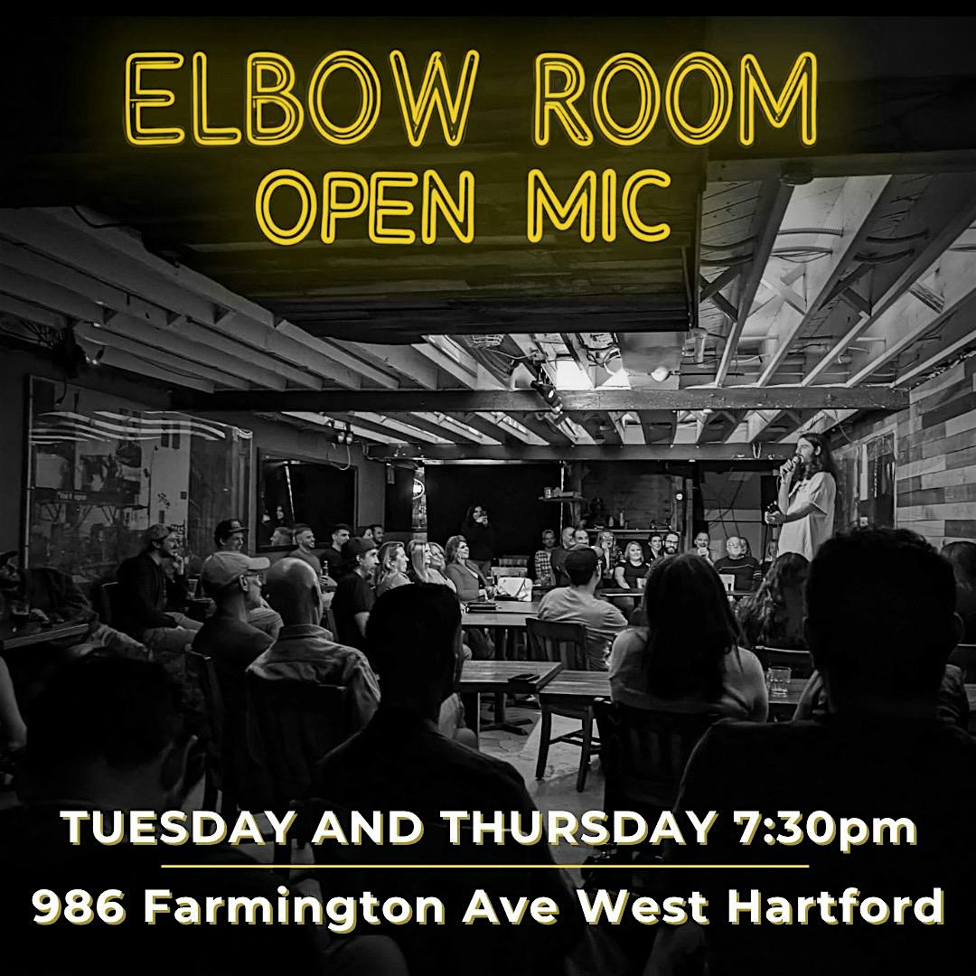 Tuesday Night Open Mic at The Elbow Room – West Hartford, CT Tuesday Night Open Mic at The Elbow Room – West Hartford, CT 7 7 people viewed this event. Where the local scene sharpens its edge. Tickets-RSVP Link Register for event Date And Time Tuesday, April 28th, 2026 @ 07:00 PM Location The Elbow Room 986 Farmington Avenue, West Hartford, CT 6107 Event Types Concert or PerformancePerforming & Visual Arts Event Category ConnecticutHartford Share With Friends Facebook Twitter Linkedin Xing Pinterest