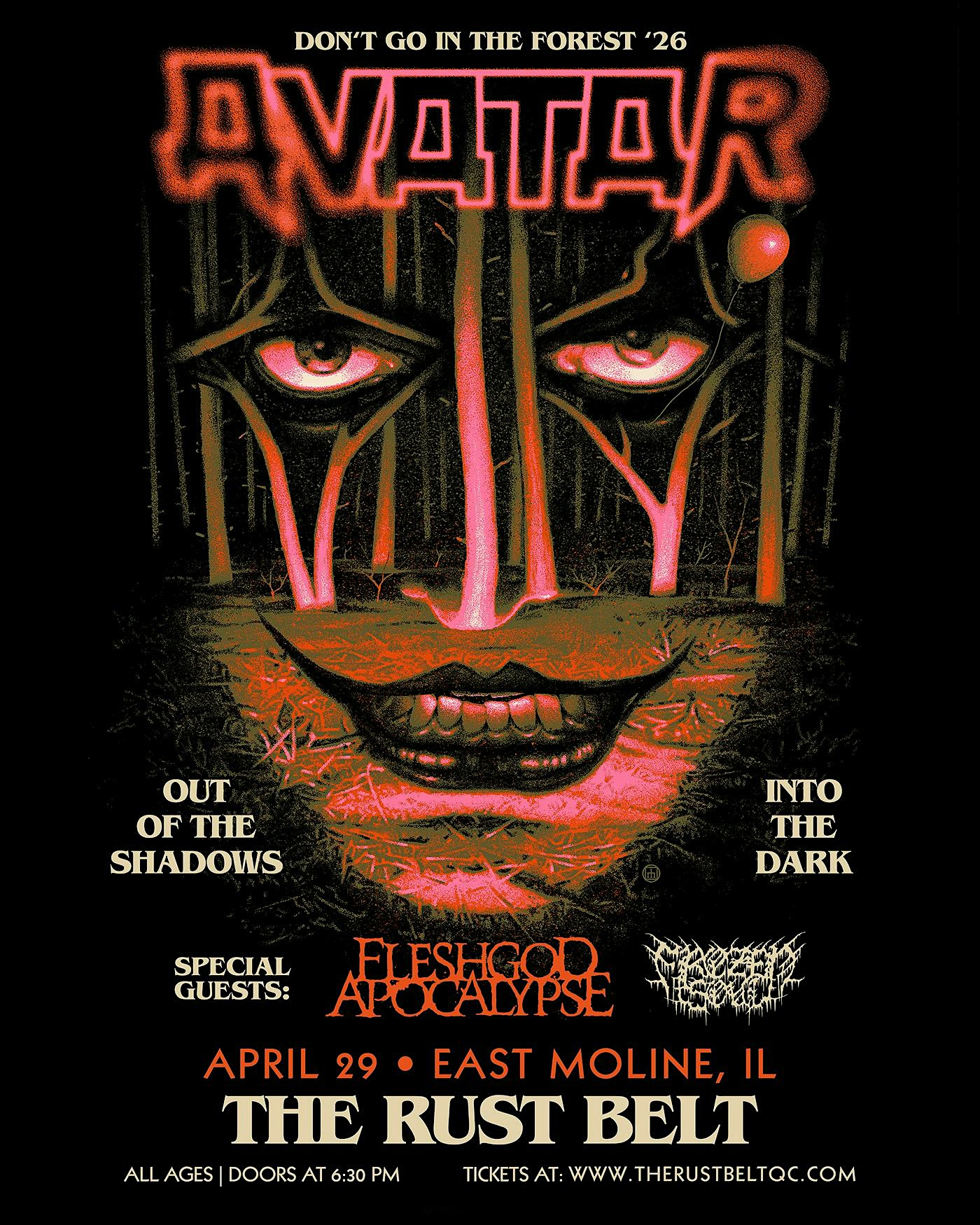 by admin24Feb AVATAR: DON’T GO IN THE FOREST 2026 at The Rust Belt – East Moline, IL AVATAR: DON’T GO IN THE FOREST 2026 at The Rust Belt – East Moline, IL 3 3 people viewed this event. Prepare for a mind-bending experience as AVATAR: DON’T GO IN THE FOREST 2026 brings a whole new dimension to The Rust Belt. Tickets-RSVP Link Date And Time Wednesday, April 29th, 2026 07:00 PM (PST) Venue The Rust Belt Location 533 12th Ave, East Moline, IL 61244 Event Types Concert or PerformanceMusic Event Category Illinois Share With Friends Facebook Twitter Linkedin Xing Pinterest Share This Post: