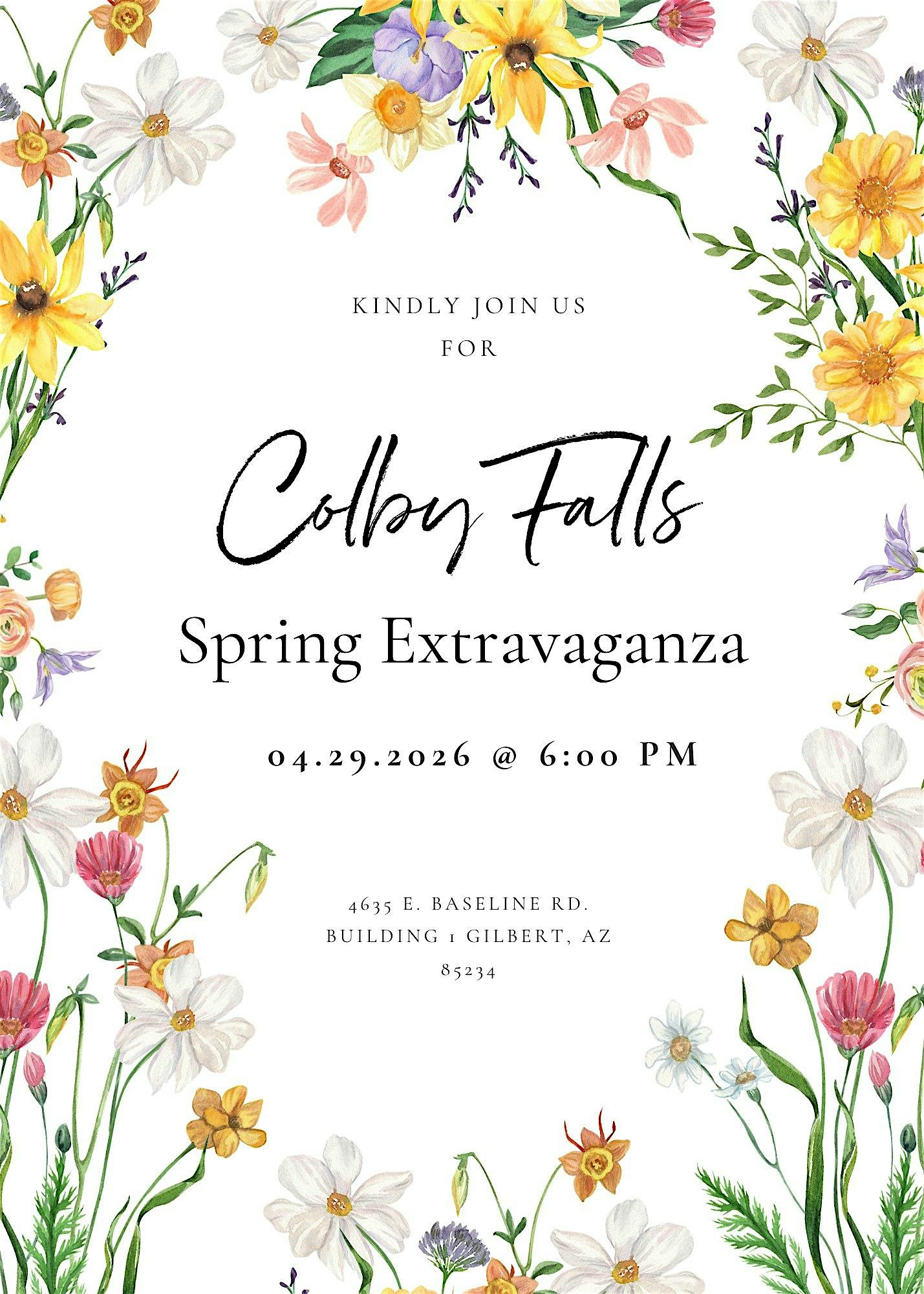 We can’t wait to host you at Colby Falls for our Spring Extravaganza! At this event, we will offer our most popular appetizers and entrees for you to try. We will also have vendors there for you to meet with, and our staff walking around to answer any questions you may have! Tickets are $25 per couple, and each couple is allowed up to 2 additional guests ($30 per guest). We can’t wait to see you there, and come hungry!