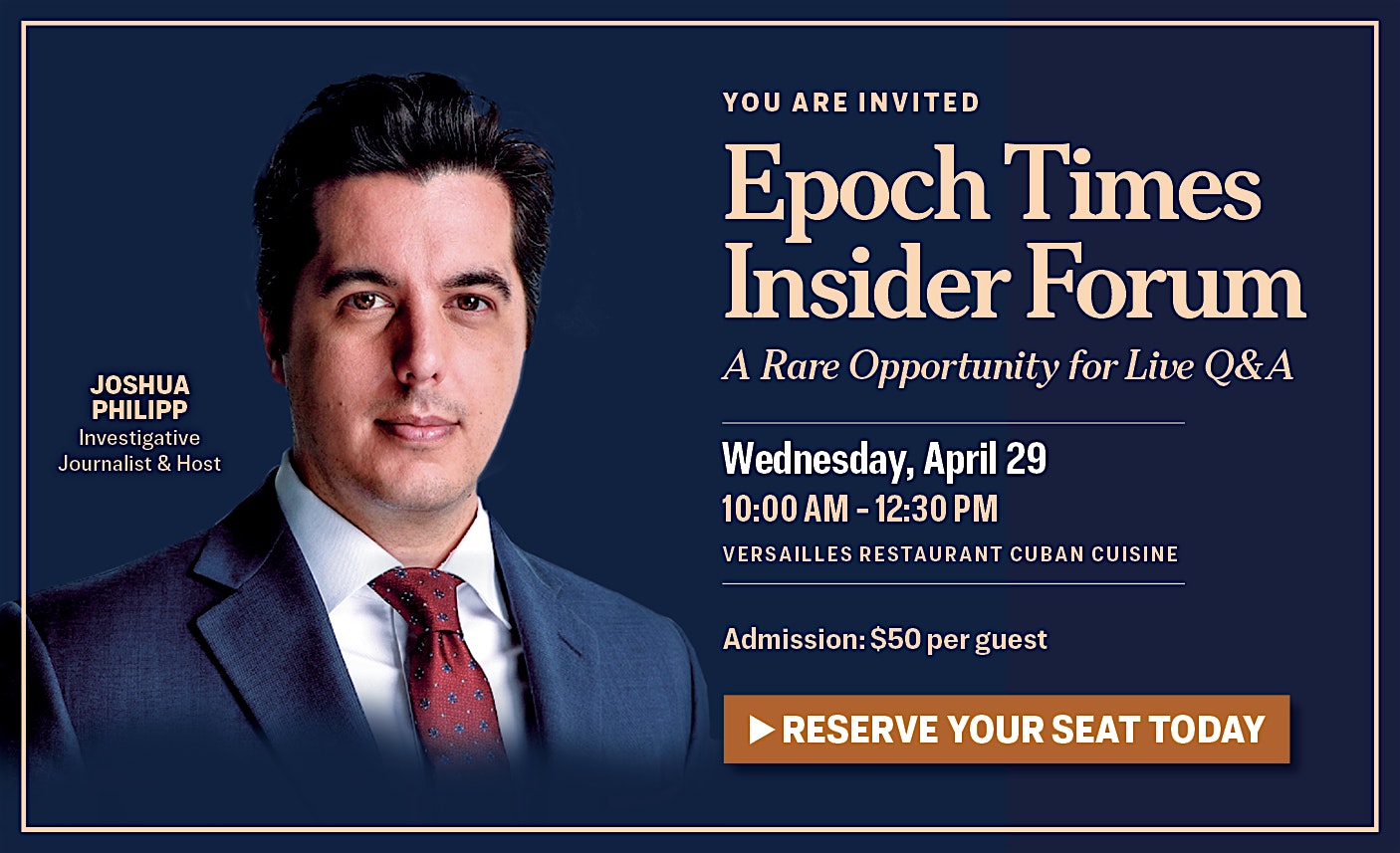 Join us in Miami for a private Insider Forum with The Epoch Times, where you’ll hear directly from the journalists behind the stories—and the decisions—that shape today’s world.