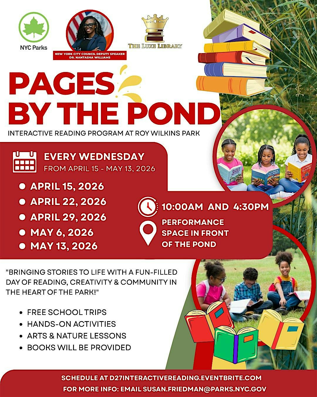 Join Luxe Library, NYC Parks & Deputy Speaker Nantasha Williams for a fun-filled day of reading, creativity and community.