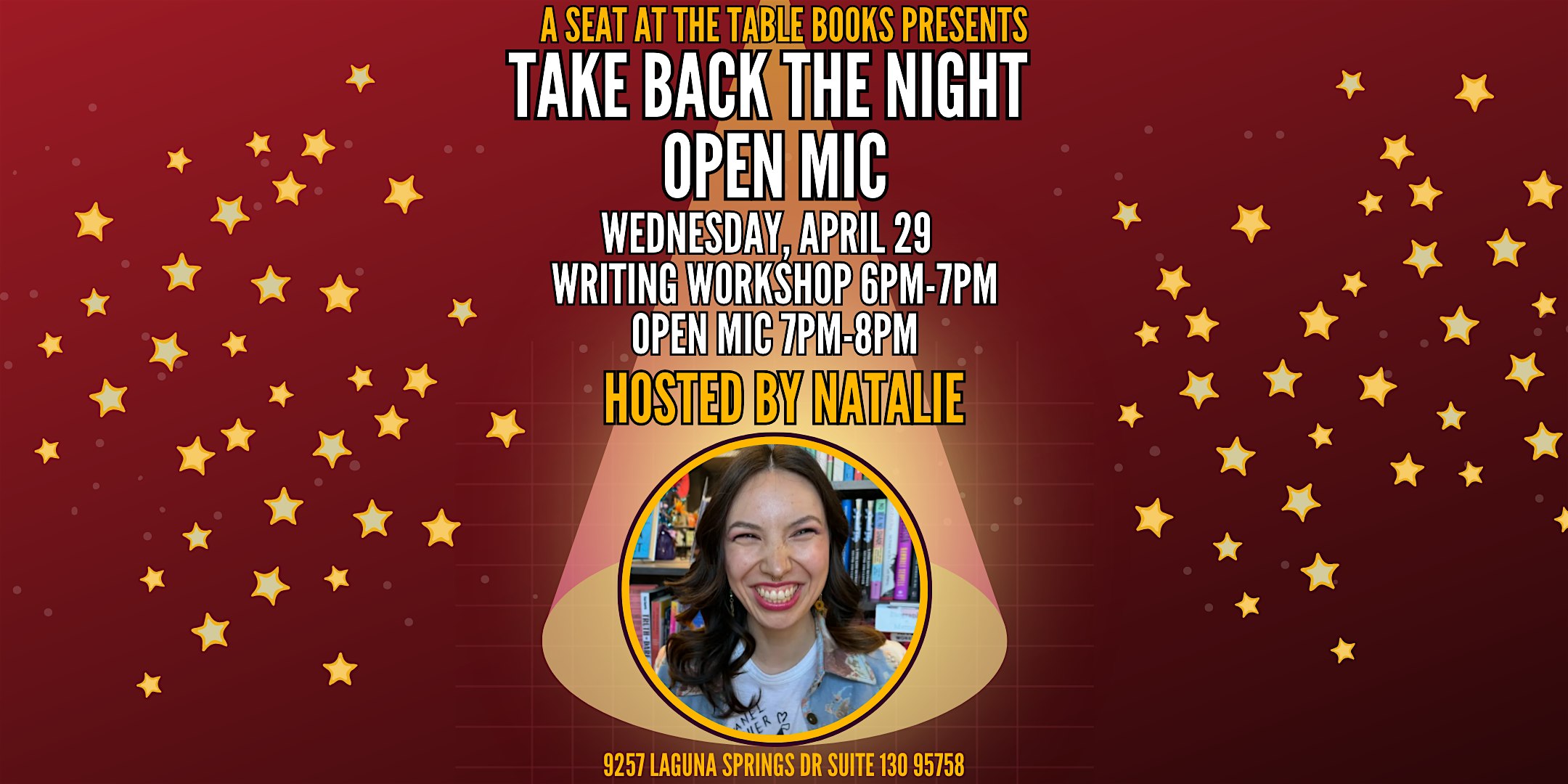 Take Back the Night Open Mic Hosted by Natalie at A Seat at the Table Books – Elk Grove, CA