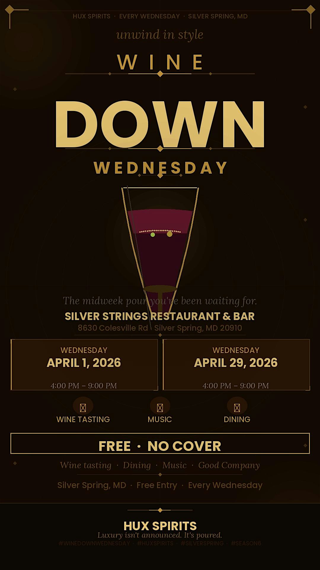 Wine Down Wednesdays presented by Hux Spirits at Silver Strings – Silver Spring, MD