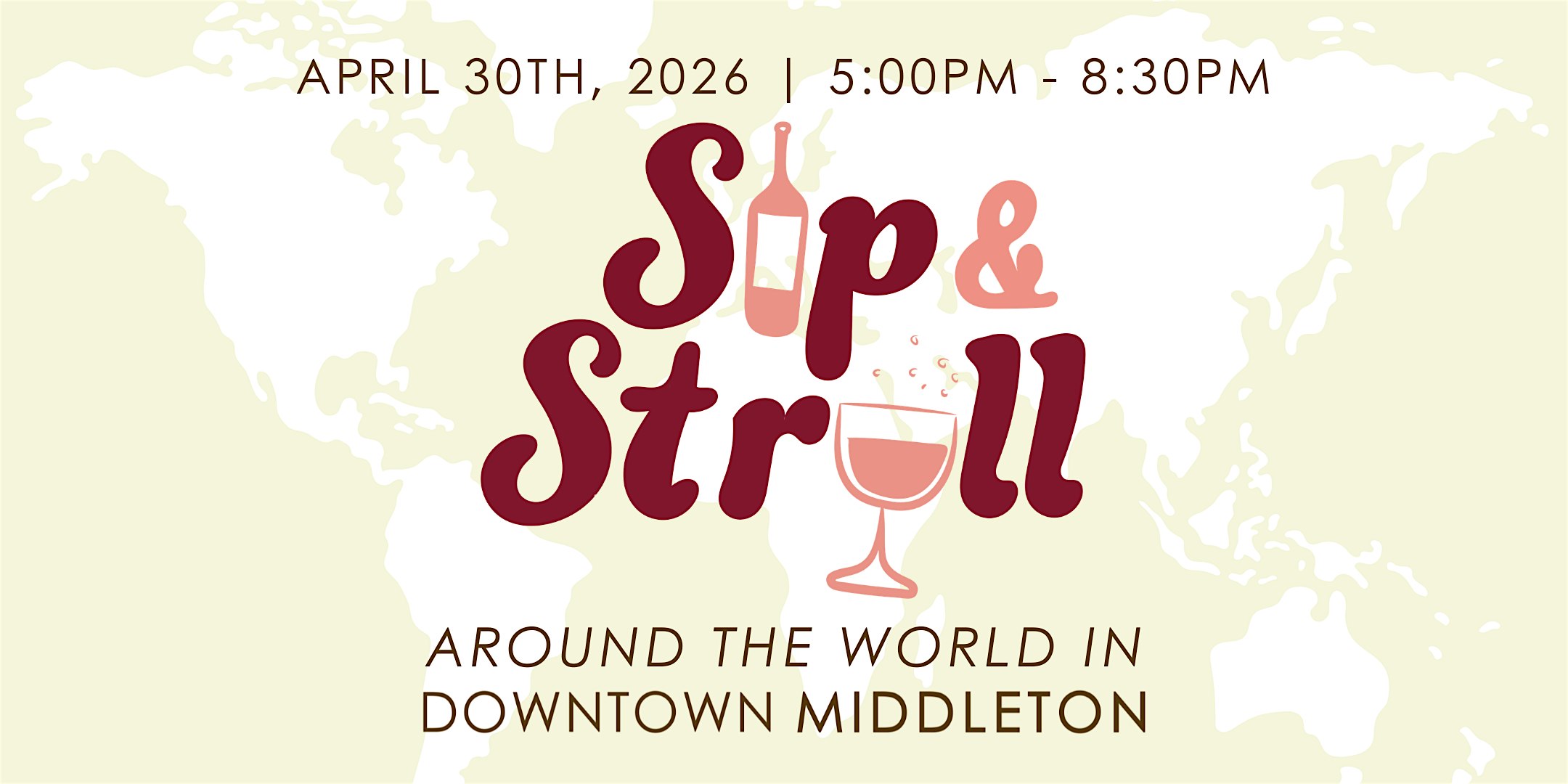 The Downtown Middleton Business Association is excited to host our annual Sip & Stroll: Wine Walk. This year the theme is Around the World!