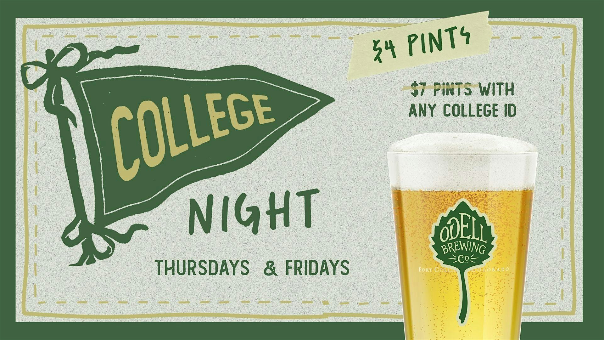 $4 pints with a College ID. For 21+. Thursdays & Fridays.