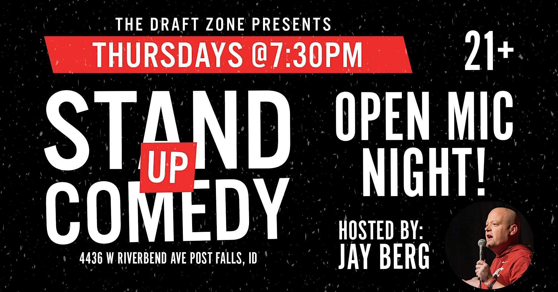 Comedy Open Mic Night @ The Draft Zone! at The Draft Zone – Post Falls, ID Comedy Open Mic Night @ The Draft Zone! at The Draft Zone – Post Falls, ID 3 3 people viewed this event. Come crack some jokes or just enjoy the laughs at our Comedy Open Mic Night @ The Draft Zone! Tickets-RSVP Link Register for event Date And Time Thursday, April 30th, 2026 @ 07:00 PM Location 4436 West Riverbend Avenue, Post Falls, ID 83854 Event Types Concert or PerformancePerforming & Visual Arts Event Category Idaho Share With Friends Facebook Twitter Linkedin Xing Pinterest