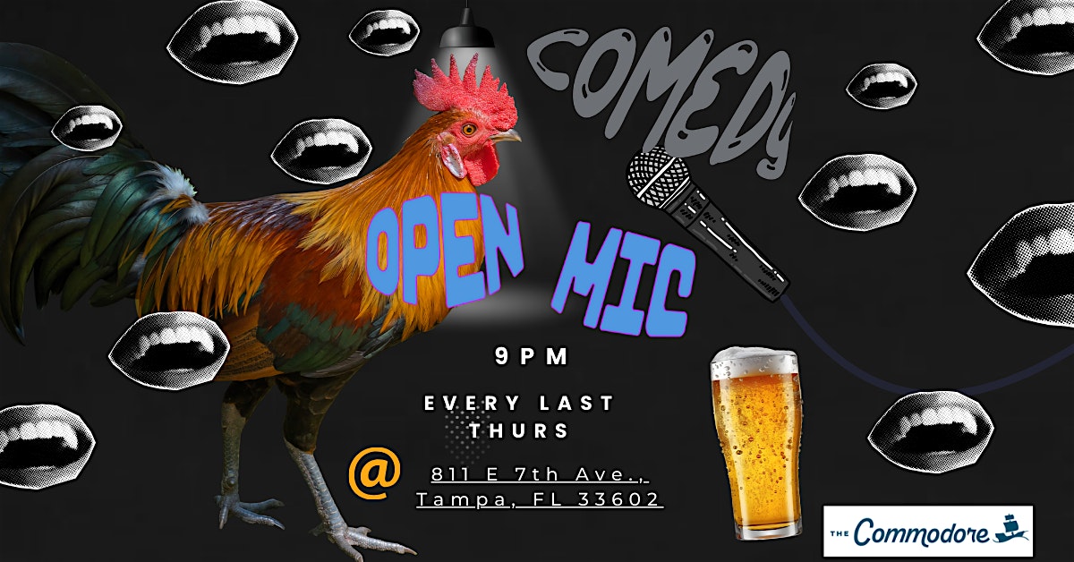 Located at The Commodore Comedy Theatre in Ybor, we convene for the first time Thursday April 24th at 9pm. This will be a recurring mic happening every last Thursday. All are welcome!