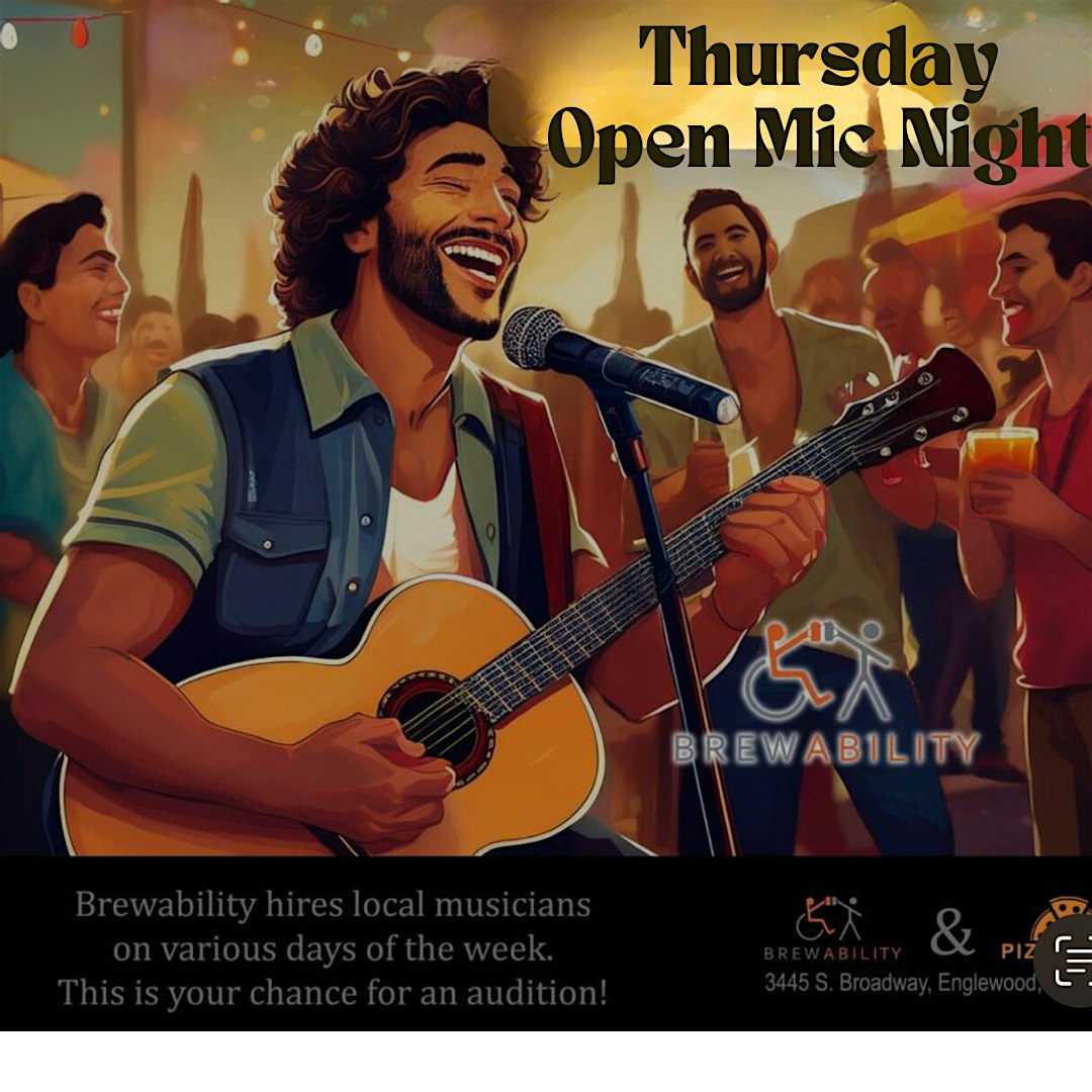Free Open Mic @ Brewability every Thursday! at 3445 S Broadway – Englewood, CO Free Open Mic @ Brewability every Thursday! at 3445 S Broadway – Englewood, CO 4 4 people viewed this event. Free Open Mic Night at Brewability! Music, poetry, comedy & community in an inclusive space. Pints, pizza & good vibes welcome all. Tickets-RSVP Link Register for event Date And Time Thursday, April 30th, 2026 @ 07:00 PM Location 3445 S Broadway 3445 South Broadway, Englewood, CO 80110 Event Types Concert or PerformancePerforming & Visual Arts Event Category ColoradoDenver Share With Friends Facebook Twitter Linkedin Xing Pinterest