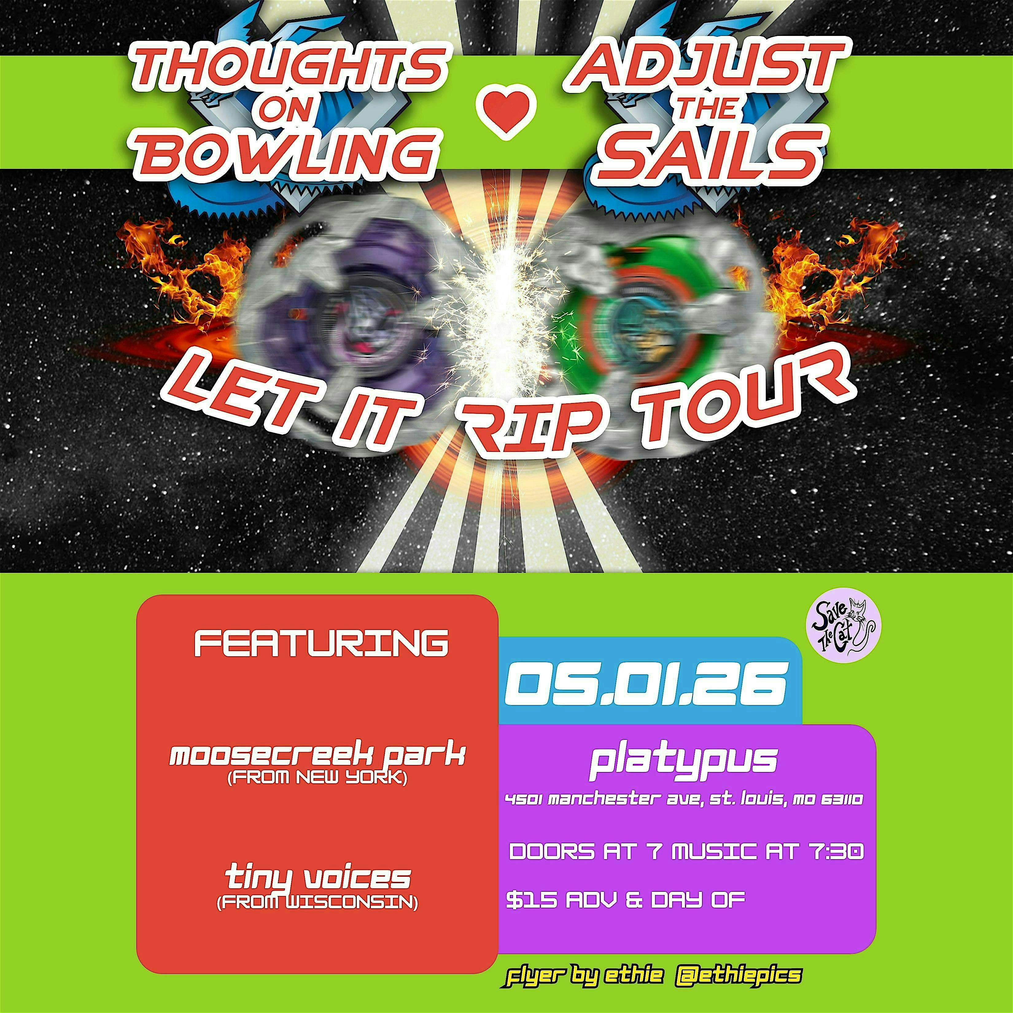 by admin13Feb Adjust The Sails / Thoughts on Bowling @ Platypus || MAY 1ST 2026 at Platypus – St. Louis, MO Adjust The Sails / Thoughts on Bowling @ Platypus || MAY 1ST 2026 at Platypus – St. Louis, MO 2 2 people viewed this event. 4 band emo bill at Platypus. Adjust The Sails, Thoughts on Bowling, halftimeshow, and MooseCreek Park. Let it rip Tickets-RSVP Link Date And Time Friday, May 1st, 2026 11:00 PM (PST) Venue Platypus Location 4501 Manchester Avenue, St. Louis, MO 63110 Event Types Concert or PerformanceMusic Event Category MissouriSt. Louis Share With Friends Facebook Twitter Linkedin Xing Pinterest Share This Post: