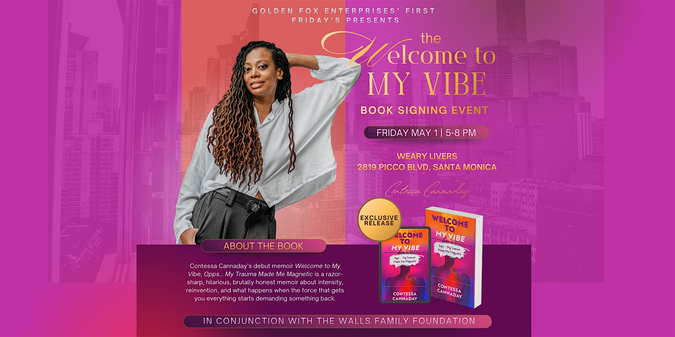 Join us for a special First Fridays evening of connection, conversation, and storytelling featuring the launch of the debut memoir Welcome to My Vibe by Contessa Cannaday.