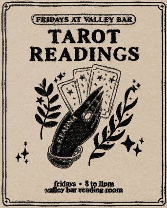 FRIDAY TAROT w/KEANNAVoted best tarot reader in Phoenix Magazine 8 – 11pm$25 direct to Keanna // all forms of payment accepted // cash + card preferred IN THE VALLEY BAR ROSE ROOM