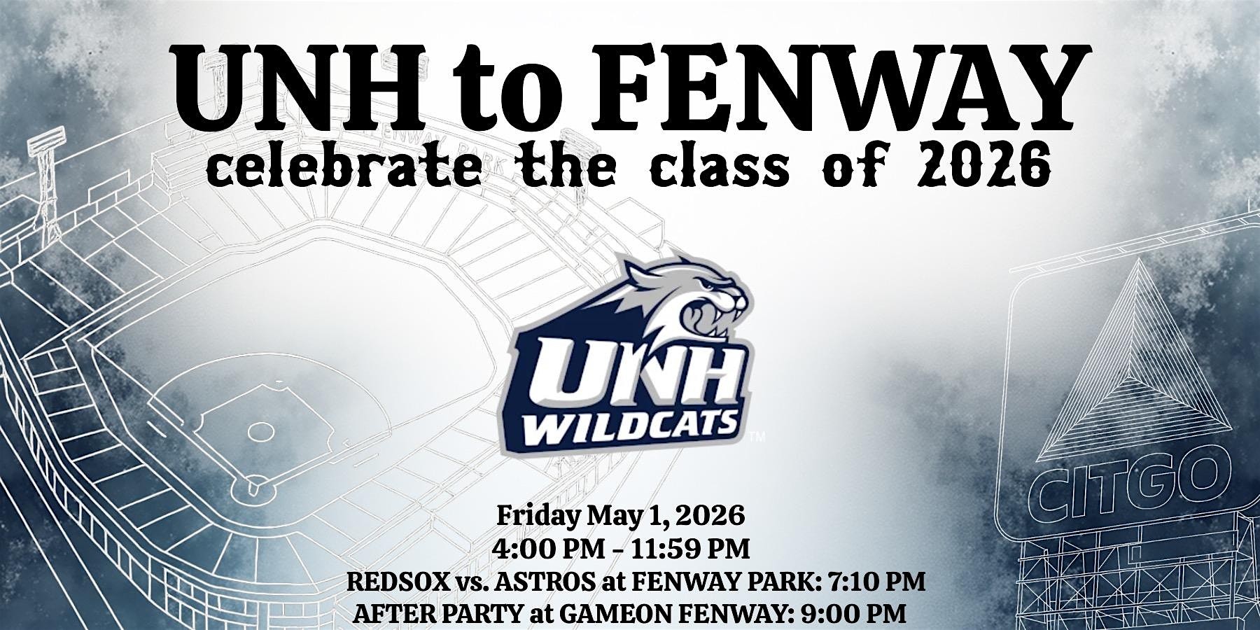 Join UNH seniors as we take on Fenway Park and cheer on the Red Sox on May 1, 2026 at 7:10 PM!