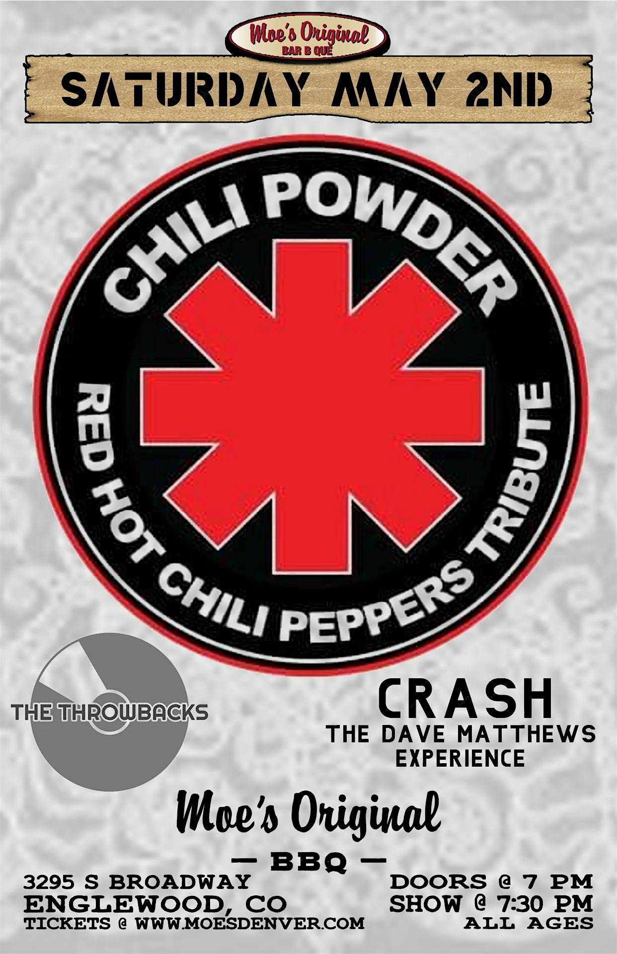 Chili Powder w/ Crash + The Throwbacks at Moe’s Original BBQ and Bowl – Englewood, CO