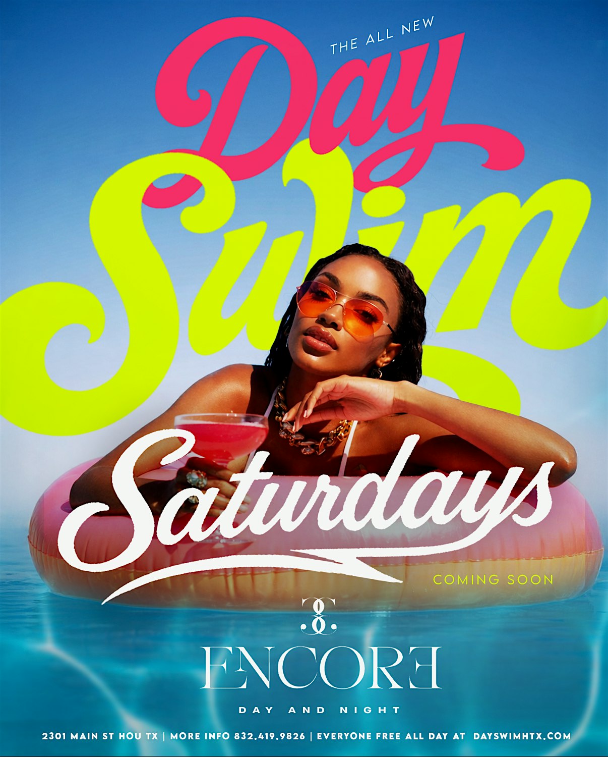 by admin13Feb DAY SWIM Saturdays Pool Party Series @ Encore at ENCORE Day & Night – Houston, TX DAY SWIM Saturdays Pool Party Series @ Encore at ENCORE Day & Night – Houston, TX 2 2 people viewed this event. 42 DUGG Live @ Houston’s #1 Pool Party Series Is Back! Adult Swim Saturdays At Sekai! Info: TXT 832.419.9826 Tickets-RSVP Link Date And Time Saturday, May 2nd, 2026 07:00 PM (PST) Venue ENCORE Day & Night Location 2301 Main Street, Houston, TX 77002 Event Types MusicParty or Social Gathering Event Category HoustonTexas Share With Friends Facebook Twitter Linkedin Xing Pinterest Share This Post: