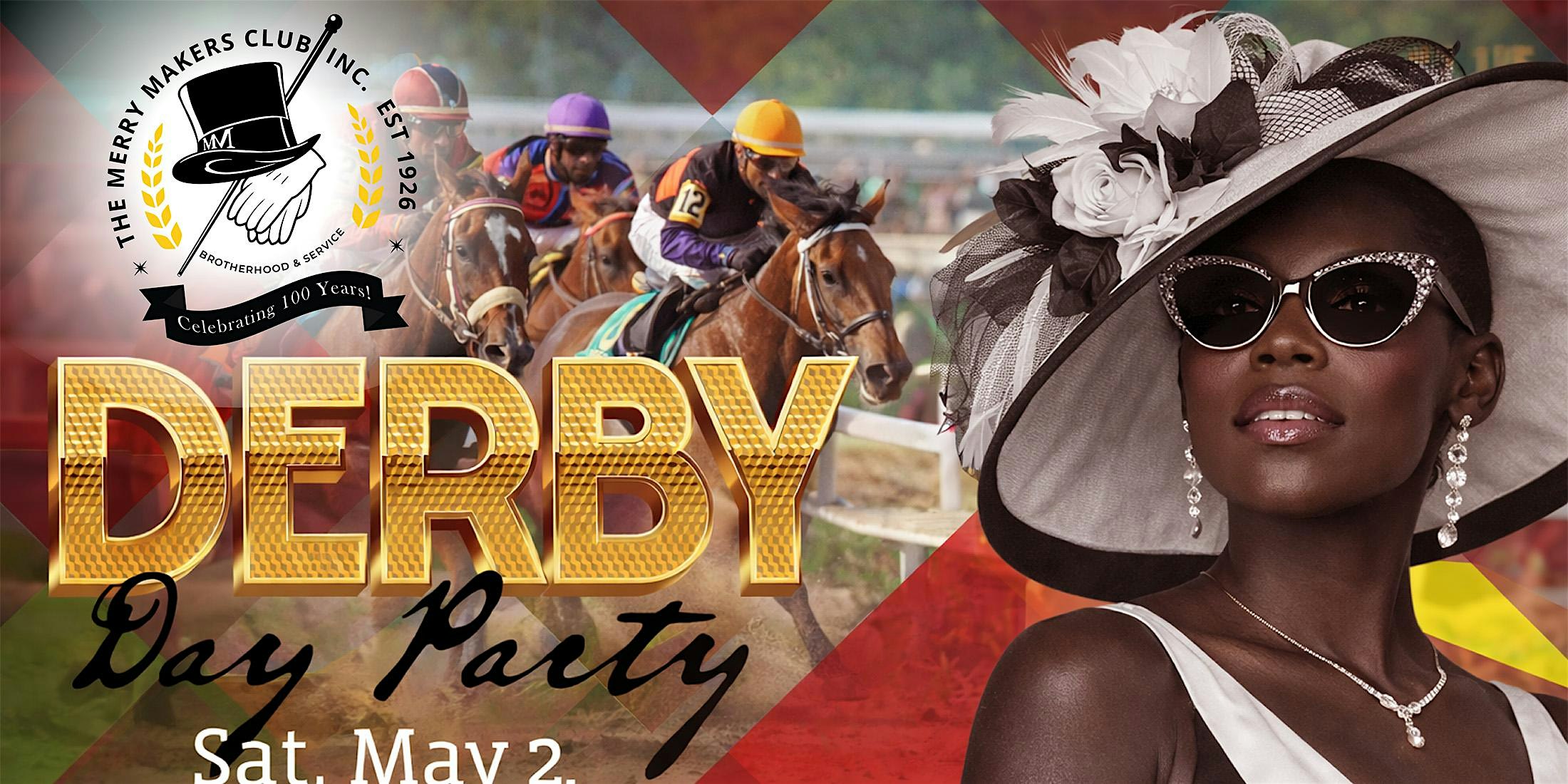 Merry Makers Club, Inc. is 100 years old! Join us Saturday, May 2nd as we kick off our centennial year celebrations with the Derby Day Party at the clubhouse. Admission is $100, tables are $800 and seat 8. Includes all beverages. Have fun with Derby fashion by showing off your spring colors and hats! Pipes & Pleasures offering the finest cigars. Hat contest for the ladies! 50/50 Horse Race Raffle. Sounds by DJ Remedy on turntables!