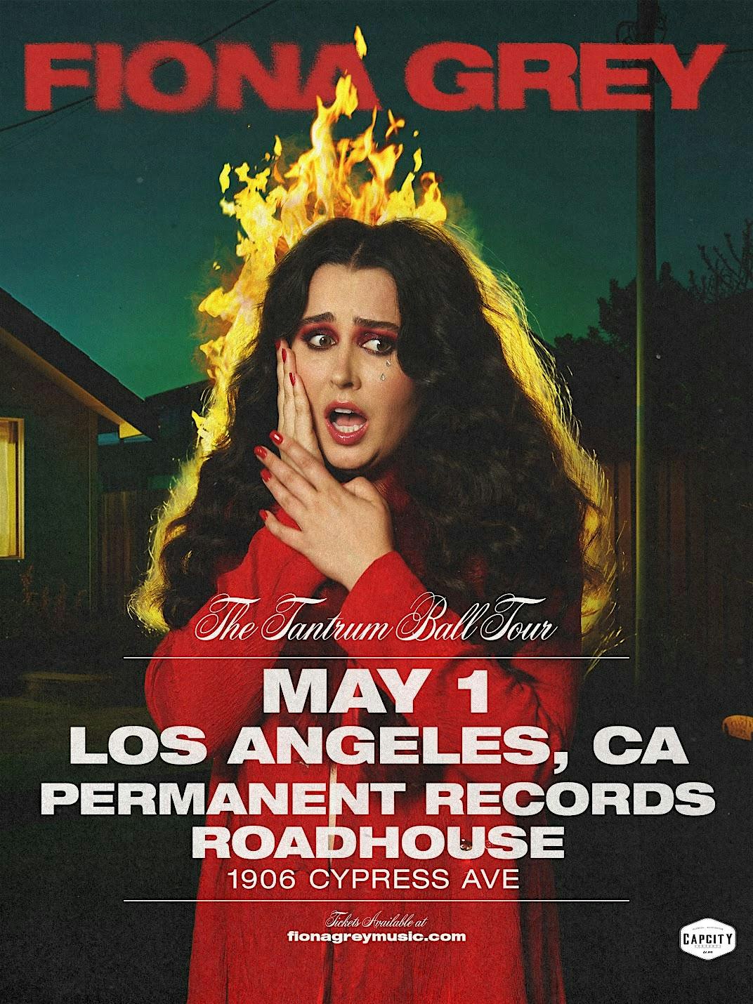 by admin13Feb Fiona Grey at Permanent Records Roadhouse – Los Angeles, CA Fiona Grey at Permanent Records Roadhouse – Los Angeles, CA 3 3 people viewed this event. This event is 21+ only. We will check IDs at the door. There are no refunds if you are turned away. Tickets-RSVP Link Date And Time Saturday, May 2nd, 2026 01:00 AM (PST) Venue Permanent Records Roadhouse Location 1906 Cypress Avenue, Los Angeles, CA 90065 Event Types Concert or PerformanceMusic Event Category CaliforniaLos Angeles Share With Friends Facebook Twitter Linkedin Xing Pinterest Share This Post: