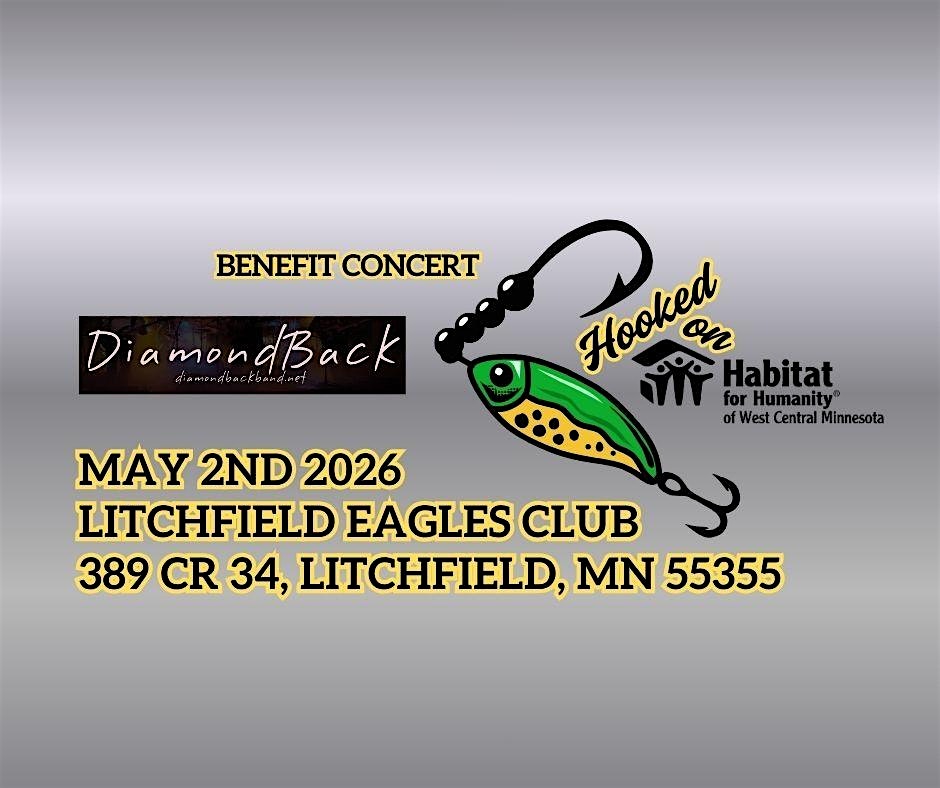 Hooked on Habitat at 389 County Rd 34 – Litchfield, MN Hooked on Habitat at 389 County Rd 34 – Litchfield, MN 6 6 people viewed this event. Come join us for a fun evening! Get Ready for Hooked on Habitat! 5pm Cocktails and Hors d’oeuvers 6pm music by Diamond Back 7pm Habitat Homeowner Remarks 8pm Send Off and Thank You Tickets-RSVP Link Register for event Date And Time Saturday, May 2nd, 2026 @ 05:00 PM Location 389 County Road 34, Litchfield, MN 55355 Event Types Charity & CausesConcert or Performance Event Category Minnesota Share With Friends Facebook Twitter Linkedin Xing Pinterest