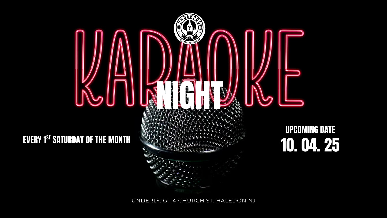 by admin13Feb Karaoke @ Underdog at Underdog Bar & Grill – Haledon, NJ Karaoke @ Underdog at Underdog Bar & Grill – Haledon, NJ 2 2 people viewed this event. Grab the mic, enjoy your fav drinks, and our iconic menu, Underdog Karaoke Night happens every 1st Saturday for laughs, vibes & fun. Tickets-RSVP Link Date And Time Saturday, May 2nd, 2026 11:00 PM (PST) Venue Underdog Bar & Grill Location 4 Church Street, Haledon, NJ 7508 Event Types MusicParty or Social Gathering Event Category New Jersey Share With Friends Facebook Twitter Linkedin Xing Pinterest Share This Post: