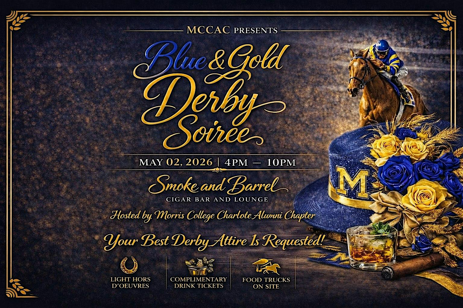 MCCAC Presents : Blue & Gold Derby Soirée at Smoke and Barrel Cigar Bar and Lounge – Mount Holly, NC