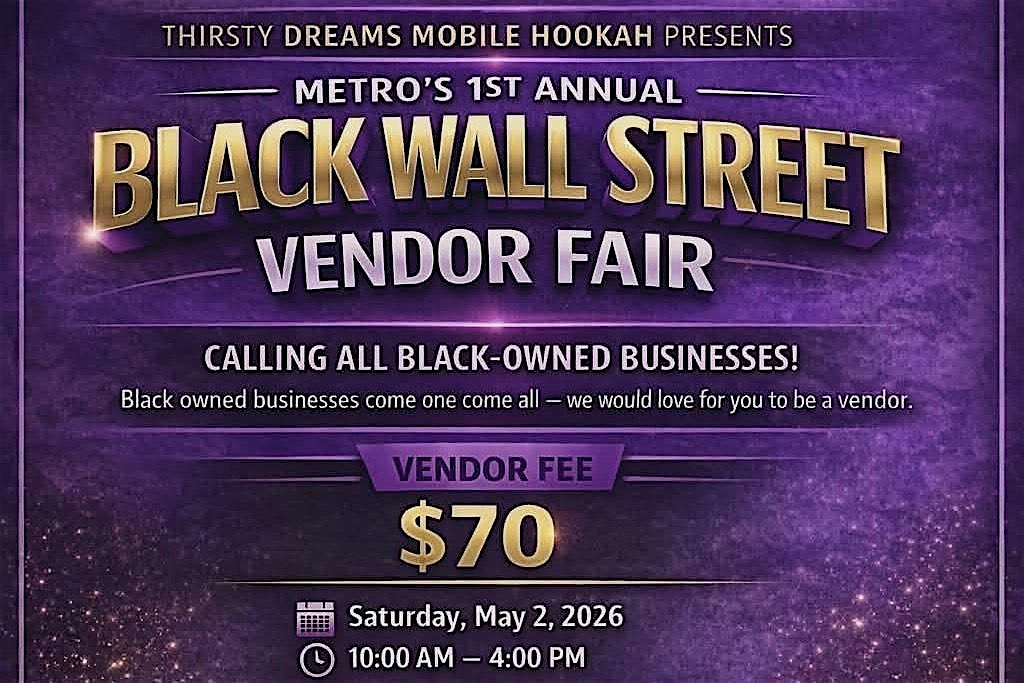 by admin22Feb Metro’s Black Wall Street Market at 720 Prescott Rd – Columbia, SC Metro’s Black Wall Street Market at 720 Prescott Rd – Columbia, SC 1 1 people viewed this event. Come join our Black owned business event see the gems in your own background Tickets-RSVP Link Date And Time Saturday, May 2nd, 2026 @ 02:00 PM Location 720 Prescott Road, Columbia, SC 29203 Event Types Festival or FairFood & Drink Event Category South Carolina Share With Friends Facebook Twitter Linkedin Xing Pinterest Share This Post: