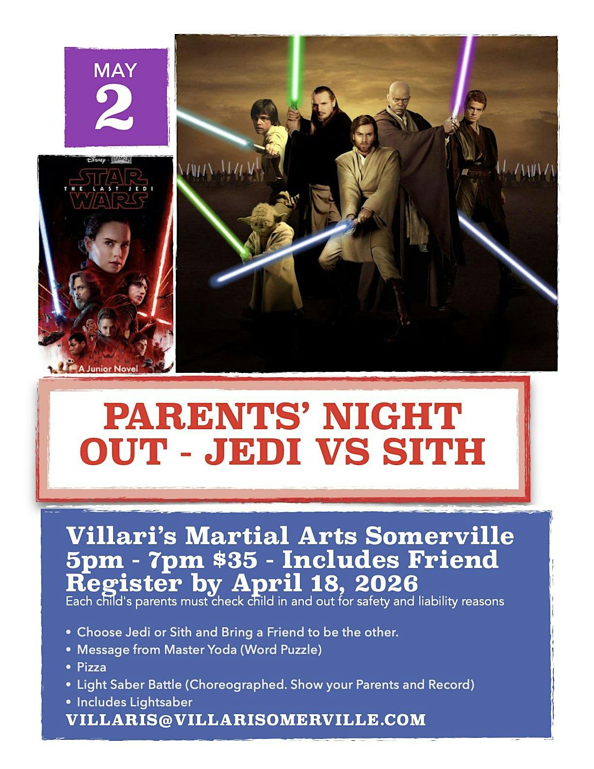 Parents’ Night Out – Jedi vs Sith at Villari’s Martial Arts Centers – Somerville, MA