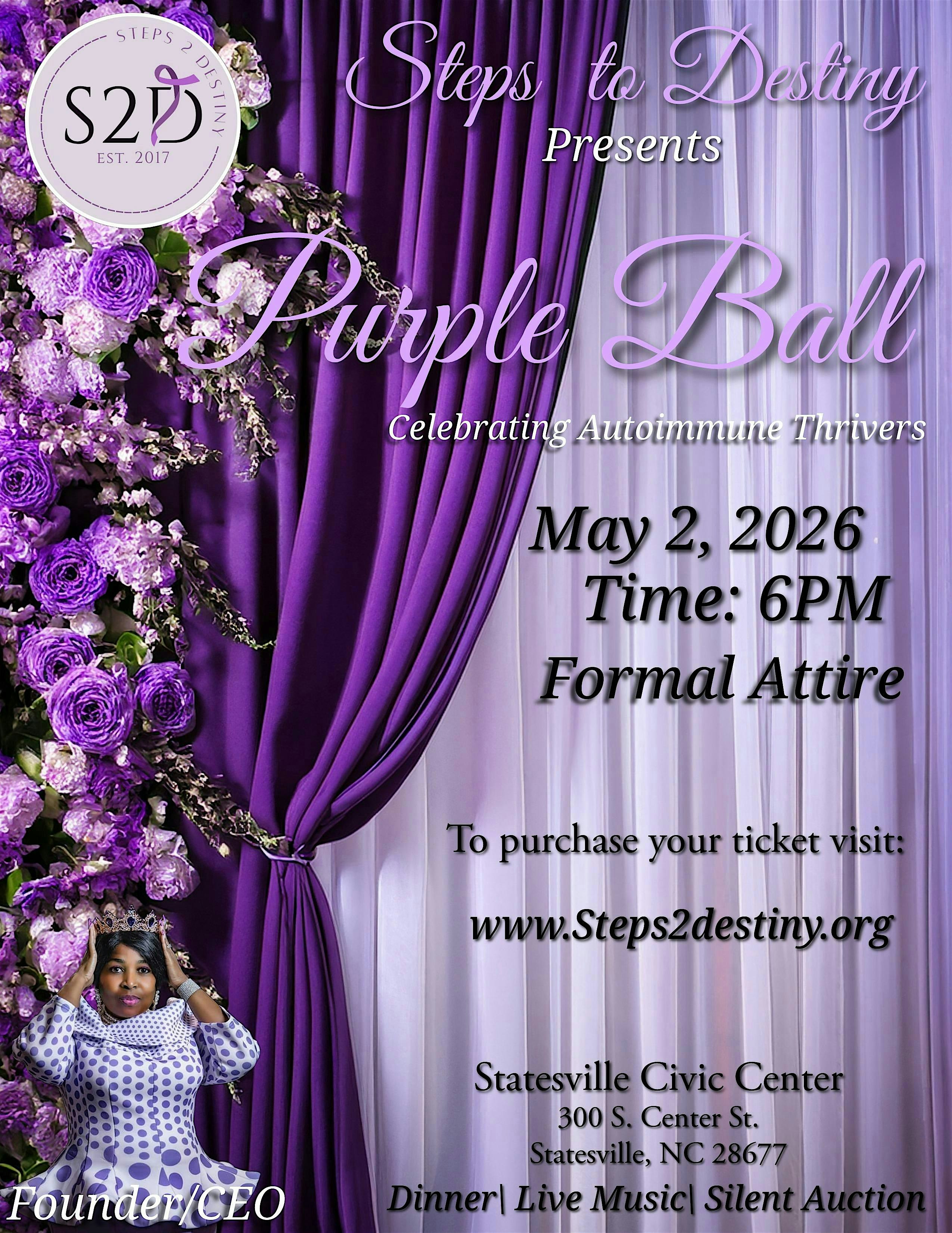 by admin13Feb Purple Ball at Statesville Civic Center – Statesville, NC Purple Ball at Statesville Civic Center – Statesville, NC 2 2 people viewed this event. You’re Invited to an Unforgettable Night! Get ready for a night packed with live music, silent auction, inspiring stories, and laughter. Tickets-RSVP Link Date And Time Saturday, May 2nd, 2026 10:00 PM (PST) Venue Statesville Civic Center Location 300 South Center Street, Statesville, NC 28677 Event Types Charity & CausesParty or Social Gathering Event Category North Carolina Share With Friends Facebook Twitter Linkedin Xing Pinterest Share This Post: