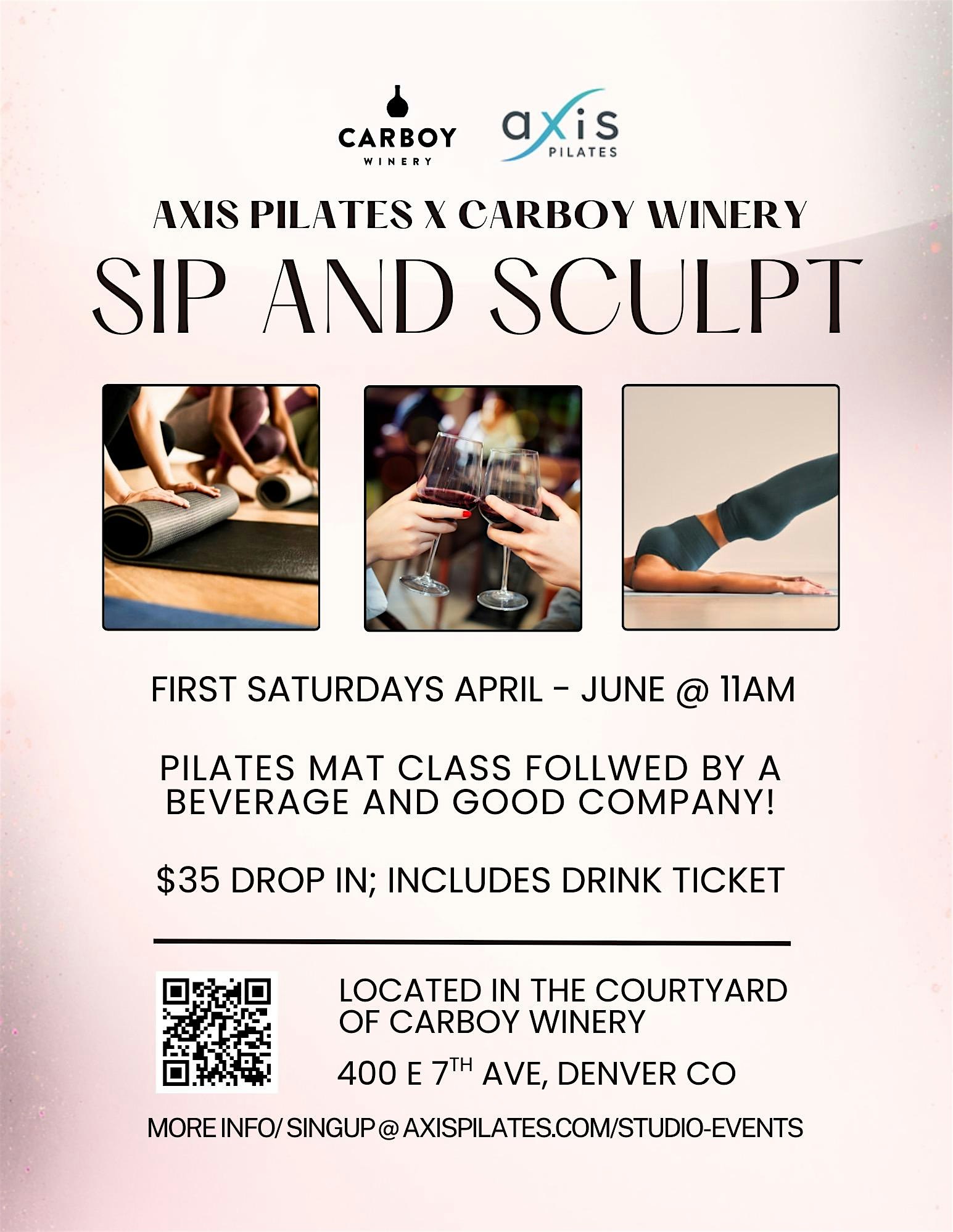 Join us in the beautiful courtyard of Carboy Winery – 7th Ave Denver location. Flow through a feel-good Pilates class hosted by Axis Pilates. A class designed to energize, strengthen and sculpt for all fitness levels. Then stay, sip, unwind, and connect with your community.