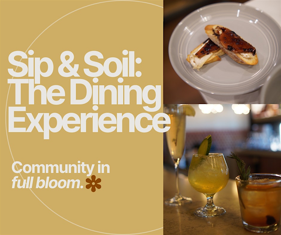 Volume 3 of Sip & Soil: The Dining Experience is an elevated cocktail social where the bar takes center stage. Guests will enjoy a signature botanical cocktail menu, chef-curated small bites circulating throughout the evening, and a live DJ setting the mood.