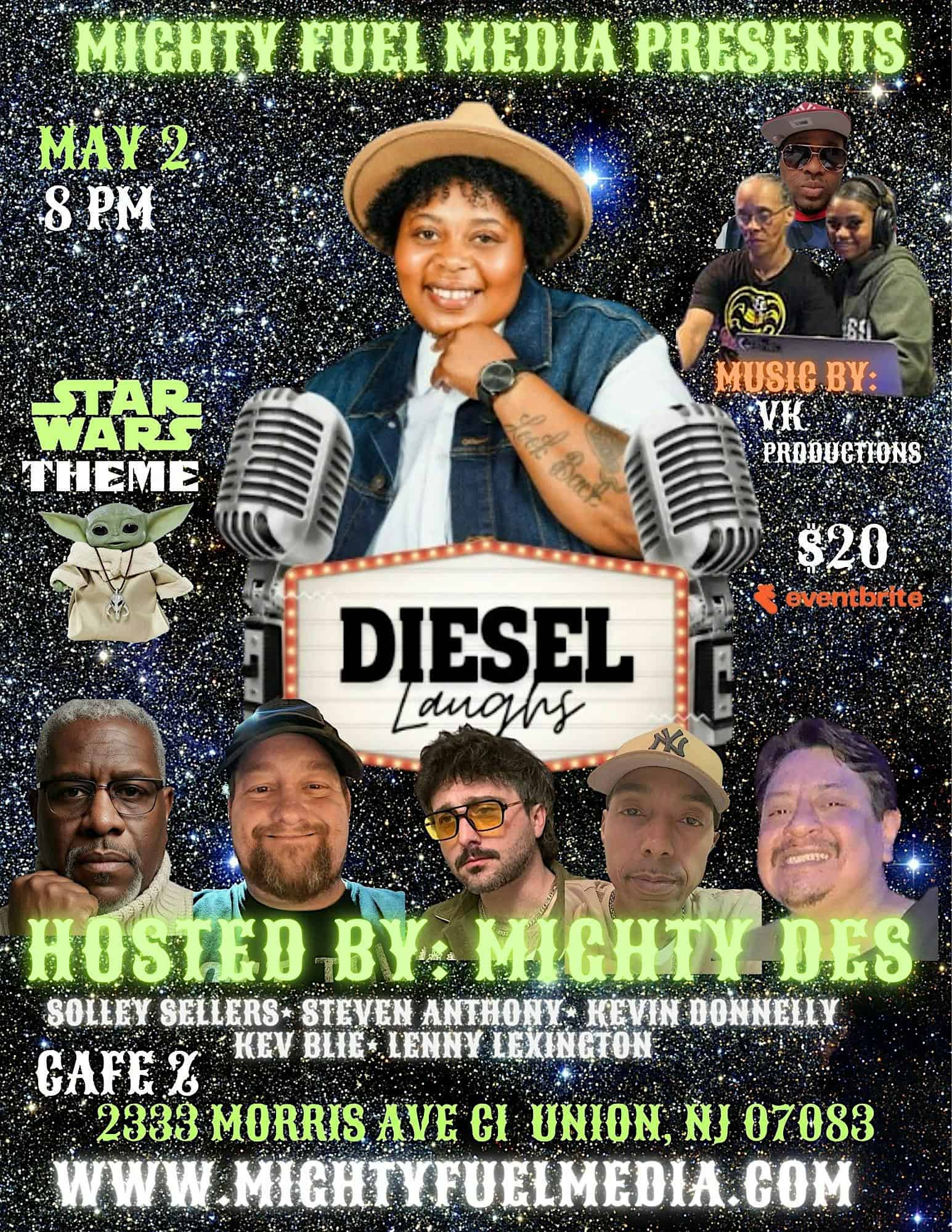 by admin14Feb DIESEL LAUGHS COMEDY SHOW :STAR WARS THEME at Cafe Z – Union, NJ DIESEL LAUGHS COMEDY SHOW :STAR WARS THEME at Cafe Z – Union, NJ 2 2 people viewed this event. Get ready to laugh your way through the galaxy at Cafe Z with the DIESEL LAUGHS COMEDY SHOW: STAR WARS THEME! Tickets-RSVP Link Date And Time Sunday, May 3rd, 2026 12:00 AM (PST) Venue Cafe Z Location 2333 Morris Avenue, Union, NJ 7083 Event Types Concert or PerformancePerforming & Visual Arts Event Category New Jersey Share With Friends Facebook Twitter Linkedin Xing Pinterest Share This Post: