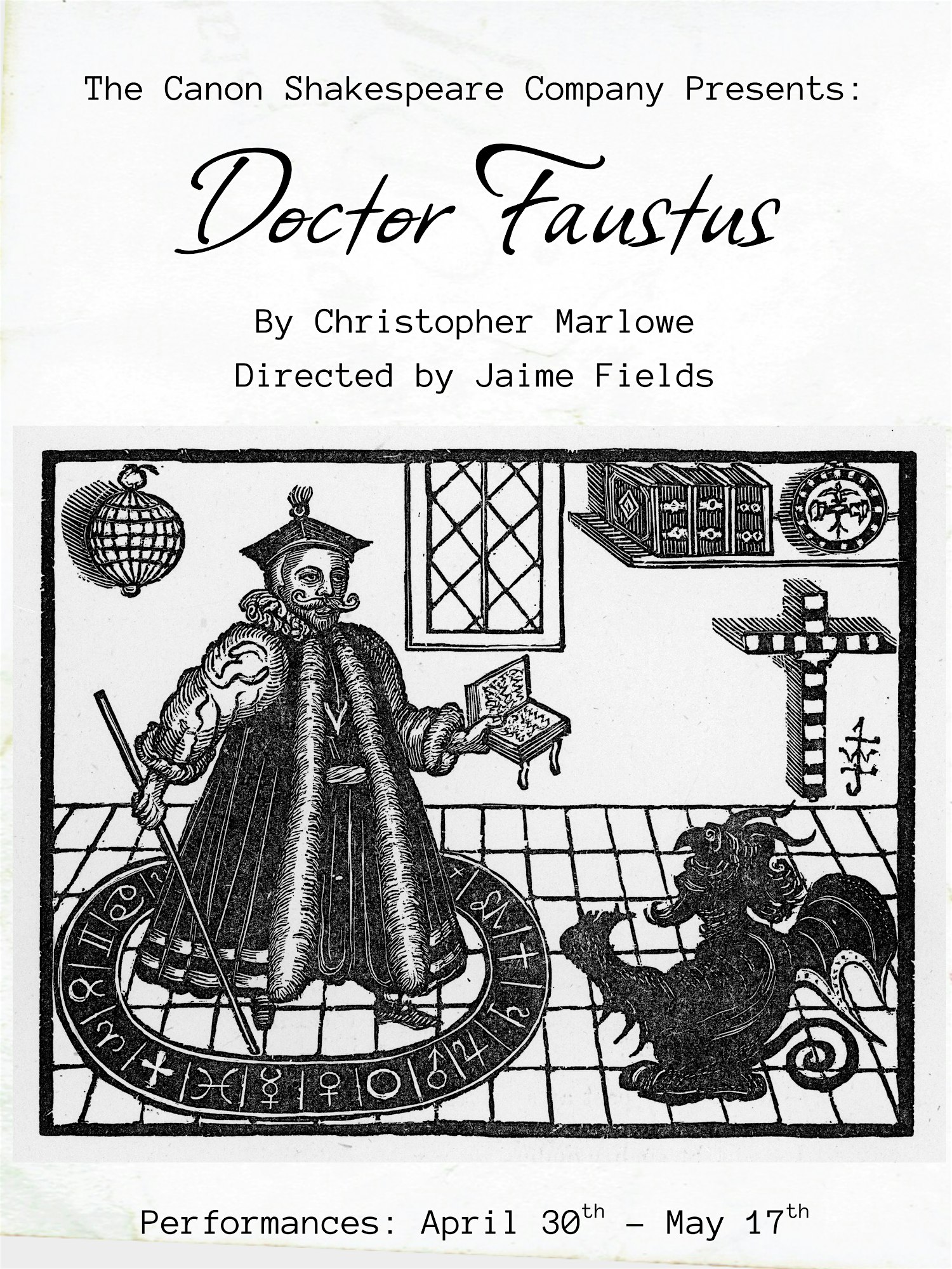 Doctor Faustus at Wyrd Hut – Portland, OR Doctor Faustus at Wyrd Hut – Portland, OR 4 4 people viewed this event. The Canon Shakespeare Co. presents Christopher Marlowe’s Doctor Faustus, the timeless tale of a man who sells his soul and pays the price. Tickets-RSVP Link Register for event Date And Time Sunday, May 3rd, 2026 @ 03:00 PM Location 4704 Southeast 65th Avenue, Portland, OR 97206 Event Types Concert or PerformancePerforming & Visual Arts Event Category OregonPortland Share With Friends Facebook Twitter Linkedin Xing Pinterest