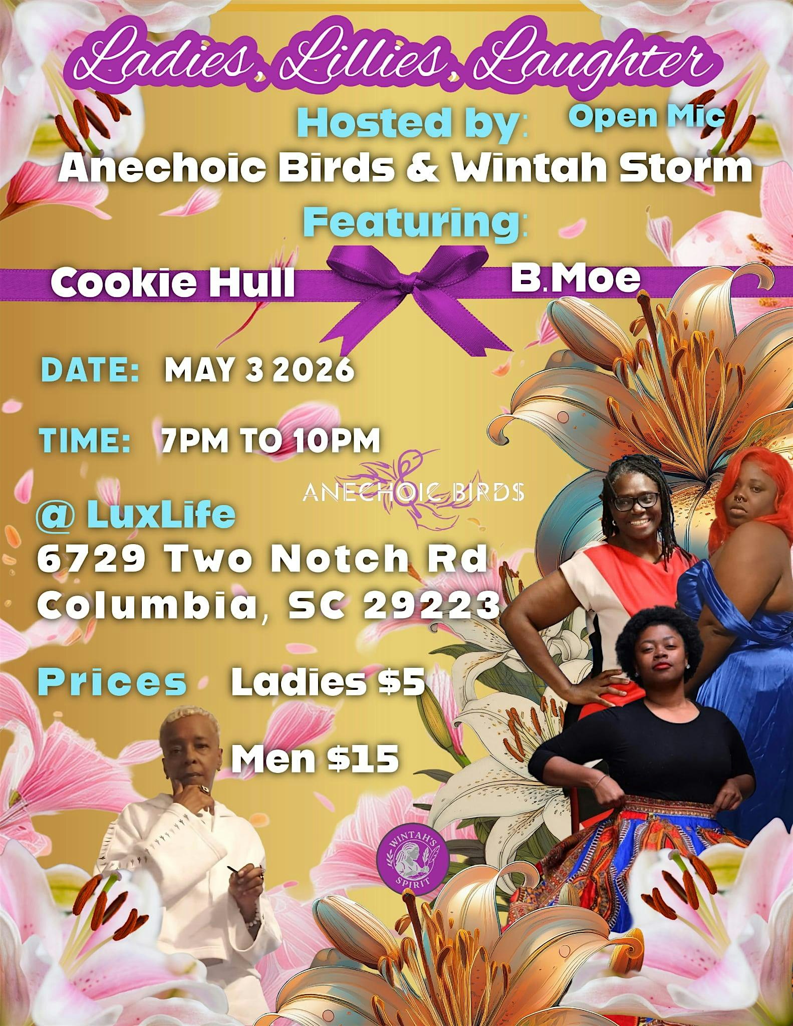by admin13Feb Ladies, Lillies, Laughter at 6729 Two Notch Rd – Columbia, SC Ladies, Lillies, Laughter at 6729 Two Notch Rd – Columbia, SC 1 1 people viewed this event. Join us for a fun-filled day of gals, gorgeous lilies, and nonstop laughs in person! Tickets-RSVP Link Date And Time Sunday, May 3rd, 2026 11:00 PM (PST) Venue 6729 Two Notch Rd Location 6729 Two Notch Road, Columbia, SC 29223 Event Types Party or Social GatheringPerforming & Visual Arts Event Category South Carolina Share With Friends Facebook Twitter Linkedin Xing Pinterest Share This Post: