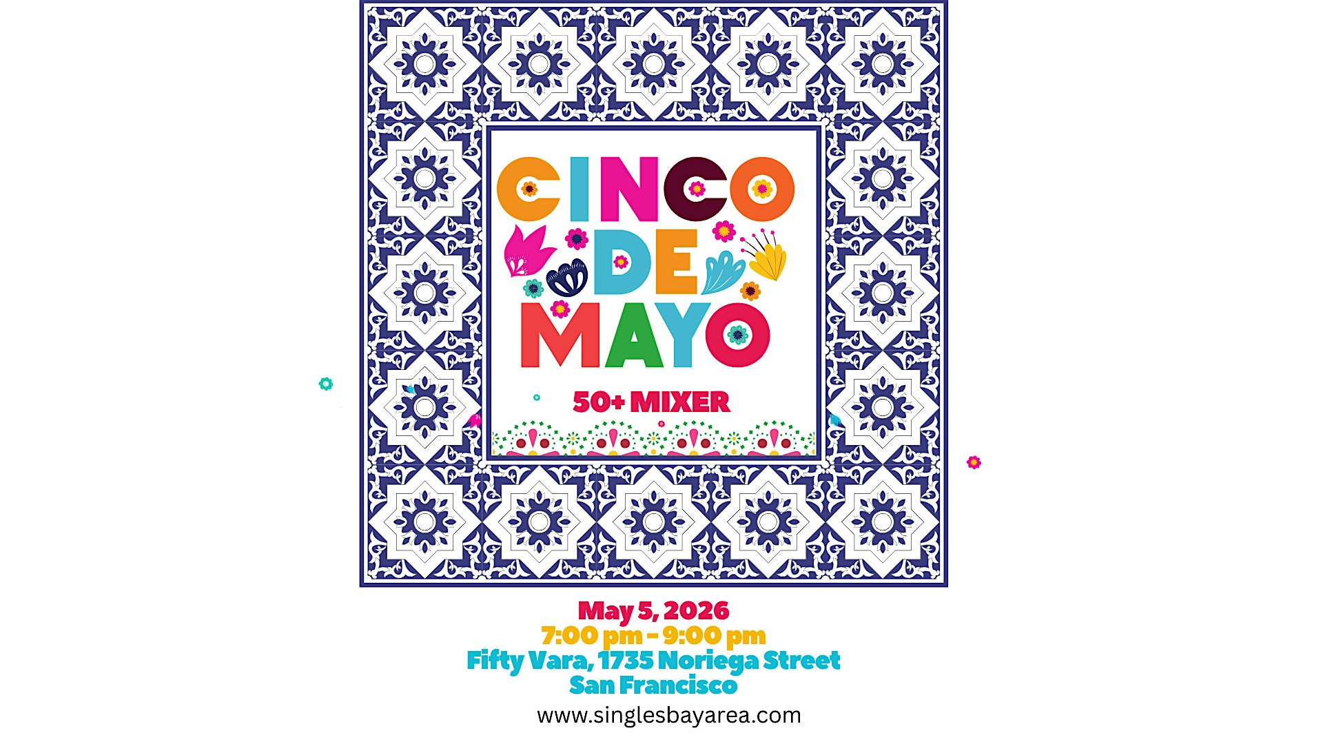 Celebrate Cinco de May with new single friends, 50+. Join us for a night designed for easy mingling. Forget the awkward silence—our signature Mixer Game breaks the ice for you, making it easy to spark a conversation with someone new. Dress to impress. Tuesday, May 5, 2026, 7:00 pm – 9:00 pm.