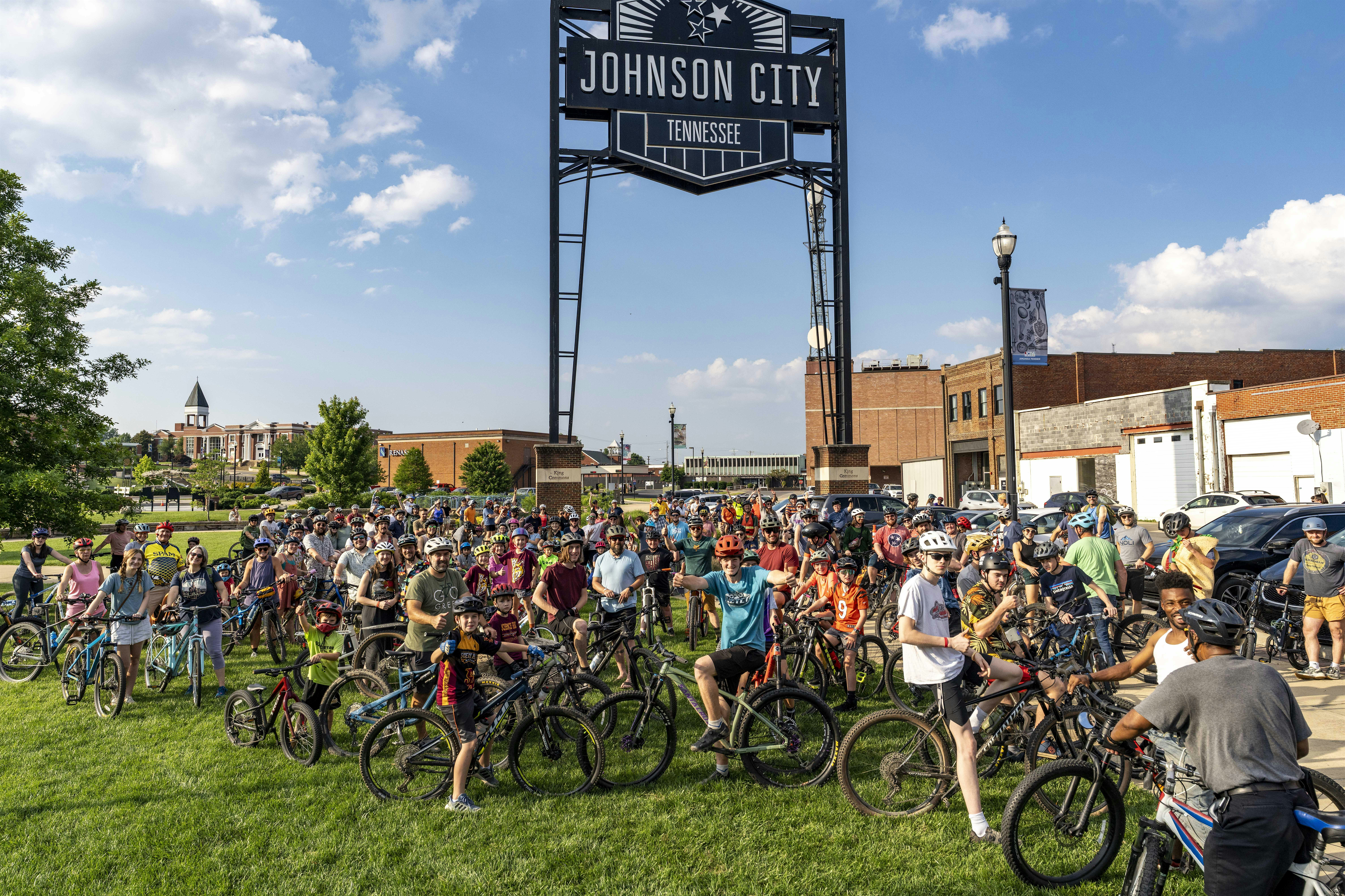 Our route runs through the Tree Streets and back to JC downtown via the Tweetsie Trail and Walnut St. JCPD blocks major intersections for us so that the whole group can stay together.