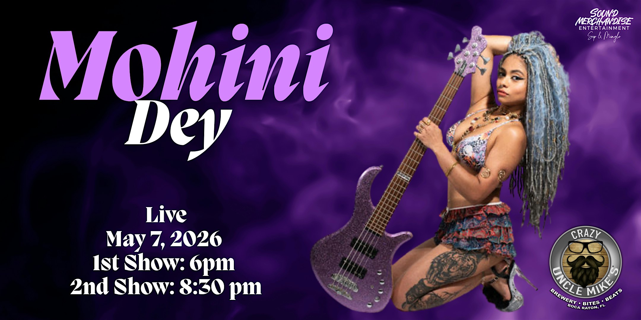 by admin13Feb Mohini Dey – Live! at Crazy Uncle Mikes – Boca Raton, FL Mohini Dey – Live! at Crazy Uncle Mikes – Boca Raton, FL 4 4 people viewed this event. Mohini Dey is live at Crazy Uncle Mike’s! Tickets-RSVP Link Date And Time Friday, May 8th, 2026 12:00 AM (PST) Venue Crazy Uncle Mikes Location 6450 N Federal Hwy, Boca Raton, FL 33487 Event Types Concert or PerformanceMusic Event Category Florida Share With Friends Facebook Twitter Linkedin Xing Pinterest Share This Post: