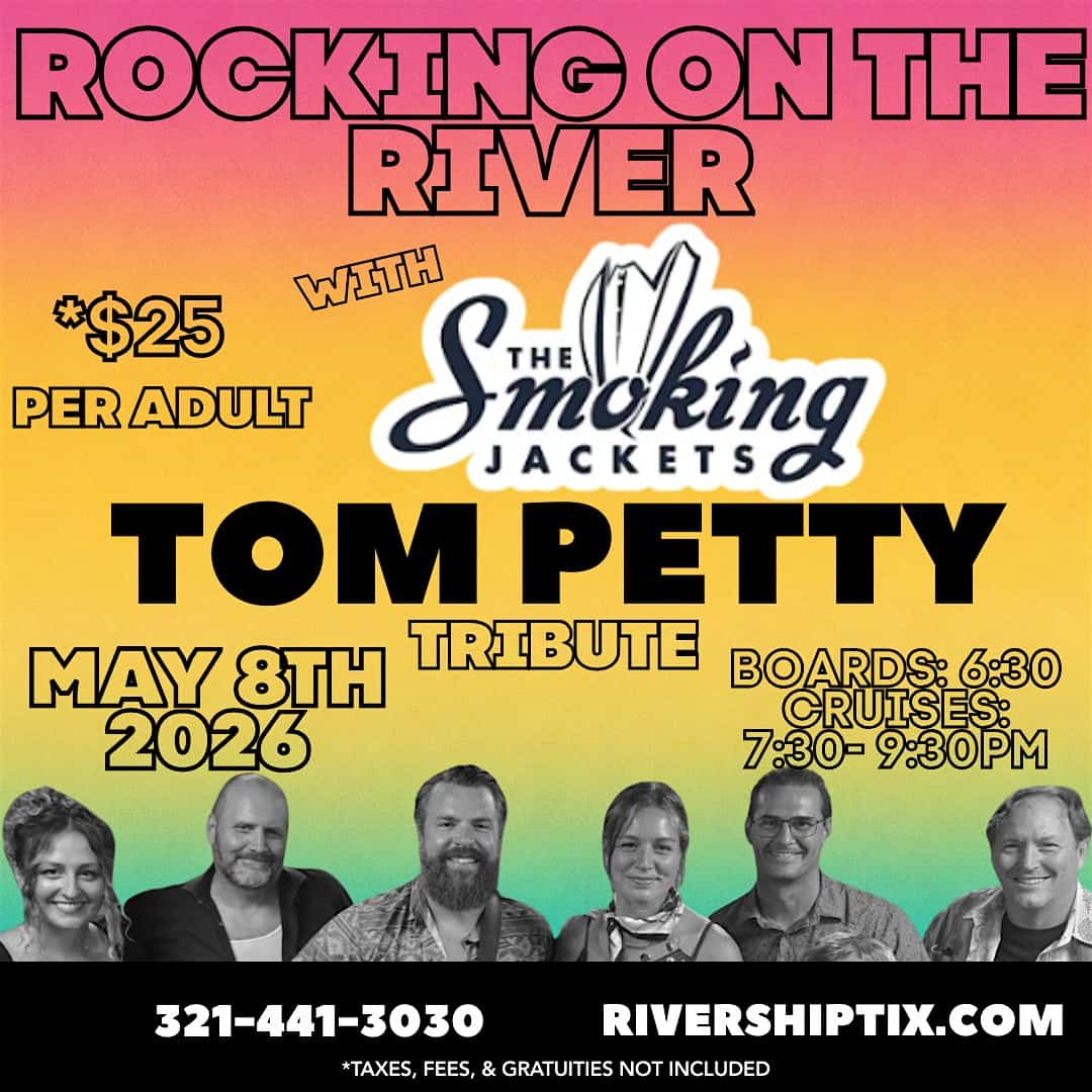 by admin14Feb Rocking on the River – Smoking Jackets – Tom Petty Tribute Aboard the Barba at St Johns Rivership Company – Sanford, FL Rocking on the River – Smoking Jackets – Tom Petty Tribute Aboard the Barba at St Johns Rivership Company – Sanford, FL 1 1 people viewed this event. Tom Petty Tribute Cruise! May 8 aboard the Barbara Lee—Smoking Jackets live, food & full bar. $25. Boarding 6:30. Tickets-RSVP Link Date And Time Friday, May 8th, 2026 10:00 PM (PST) Venue St Johns Rivership Company Location 433 North Palmetto Avenue, Sanford, FL 32771 Event Types Concert or PerformanceMusic Event Category FloridaOrlando Share With Friends Facebook Twitter Linkedin Xing Pinterest Share This Post: