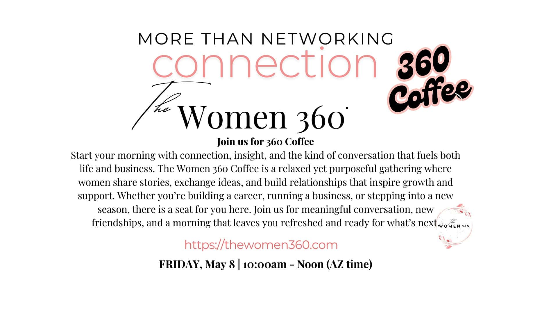by admin14Feb The Women 360 Coffee at 2162 E Williams Field Rd suite 111 – Gilbert, AZ The Women 360 Coffee at 2162 E Williams Field Rd suite 111 – Gilbert, AZ 1 1 people viewed this event. One simple cup of coffee can change your business! Come and see how. Tickets-RSVP Link Date And Time Friday, May 8th, 2026 05:00 PM (PST) Venue 2162 E Williams Field Rd suite 111 Location 2162 East Williams Field Road, Gilbert, AZ 85295 Event Types Food & Drink Event Category Arizona Share With Friends Facebook Twitter Linkedin Xing Pinterest Share This Post:
