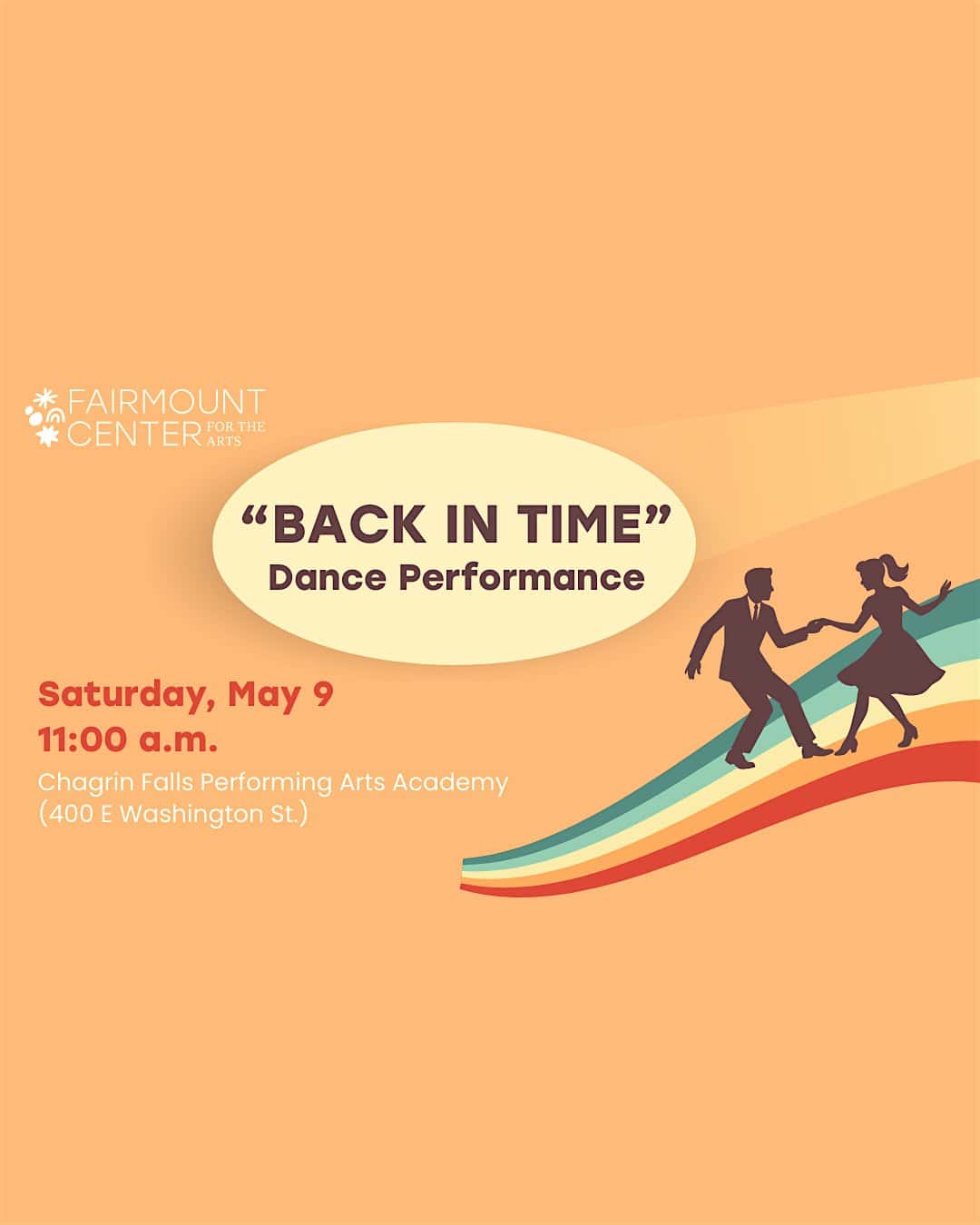 by admin14Feb “Back In Time” Dance Performance, 11AM Show at Chagrin Falls Performing Arts Academy – Chagrin Falls, OH “Back In Time” Dance Performance, 11AM Show at Chagrin Falls Performing Arts Academy – Chagrin Falls, OH 1 1 people viewed this event. Celebrate with us as we culminate our Winter & Spring 2026 session with a special performance by Fairmount’s student dancers. Tickets-RSVP Link Date And Time Saturday, May 9th, 2026 03:00 PM (PST) Venue Chagrin Falls Performing Arts Academy Location 400 East Washington Street, Chagrin Falls, OH 44022 Event Types Concert or PerformancePerforming & Visual Arts Event Category ClevelandOhio Share With Friends Facebook Twitter Linkedin Xing Pinterest Share This Post: