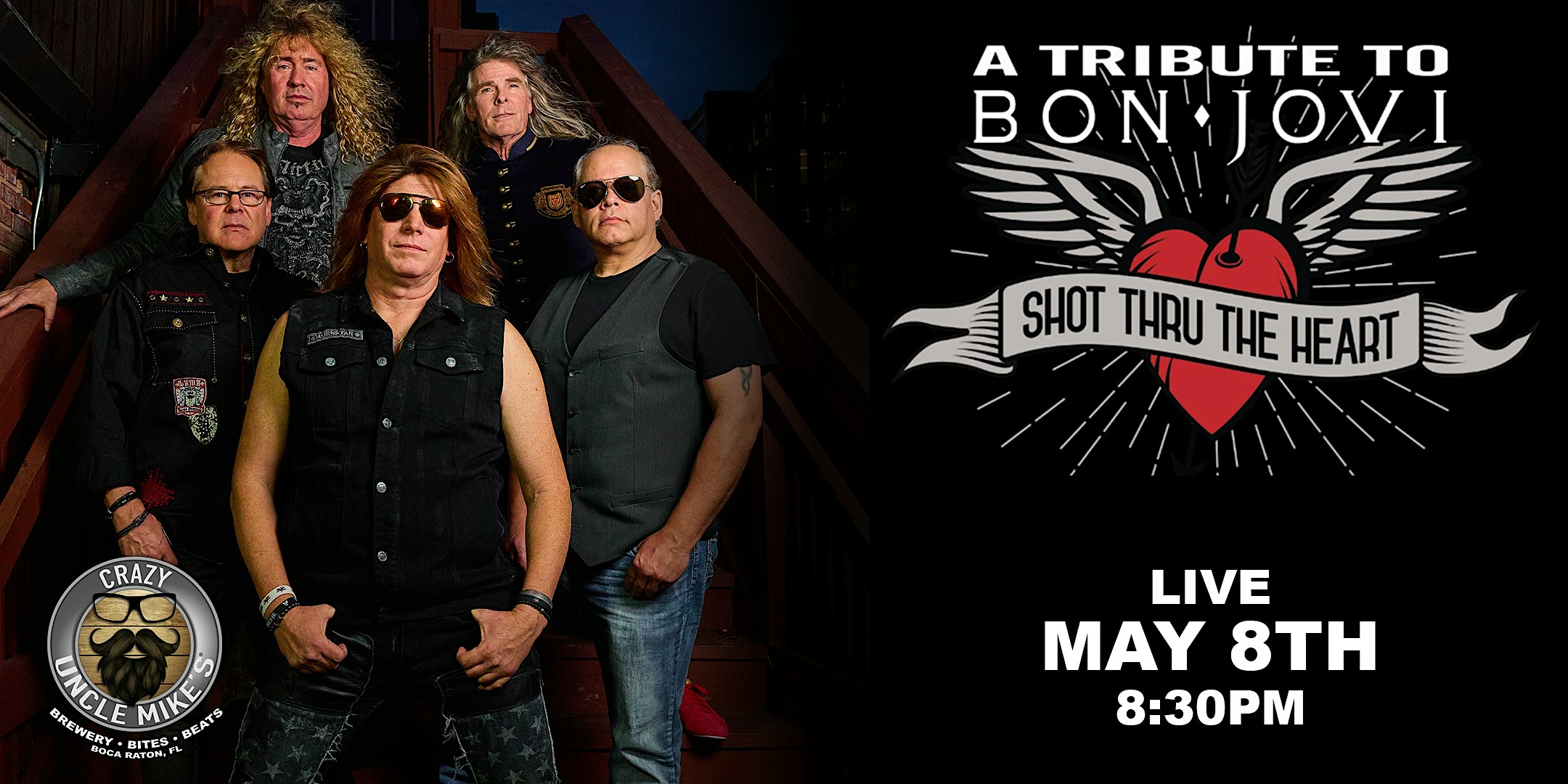 by admin13Feb Shot Thru The Heart – A Tribute to Bon Jovi at Crazy Uncle Mikes – Boca Raton, FL Shot Thru The Heart – A Tribute to Bon Jovi at Crazy Uncle Mikes – Boca Raton, FL 2 2 people viewed this event. Shot Thru The Heart – A Tribute to Bon Jovi is live at Crazy Uncle Mike’s! Tickets-RSVP Link Date And Time Saturday, May 9th, 2026 12:00 AM (PST) Venue Crazy Uncle Mikes Location 6450 N Federal Hwy, Boca Raton, FL 33487 Event Types Concert or PerformanceMusic Event Category Florida Share With Friends Facebook Twitter Linkedin Xing Pinterest Share This Post: