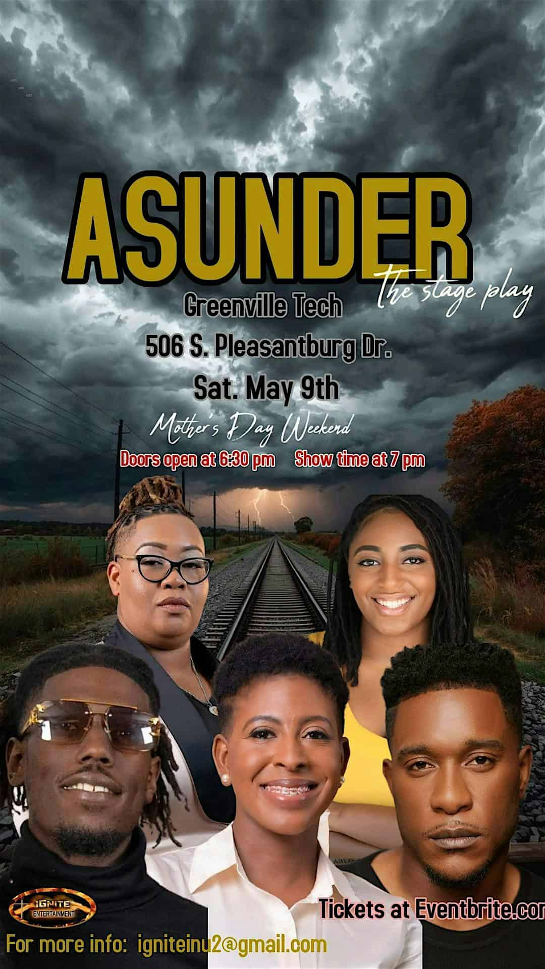by admin14Feb Special Mother’s Day event Asunder the stage play at Greenville Technical College – Greenville, SC Special Mother’s Day event Asunder the stage play at Greenville Technical College – Greenville, SC 1 1 people viewed this event. Looking for a great way to celebrate Mother’s Day? How about a great performance! Tickets-RSVP Link Date And Time Saturday, May 9th, 2026 11:00 PM (PST) Venue Greenville Technical College Location 506 South Pleasantburg Drive, Greenville, SC 29607 Event Types Concert or PerformancePerforming & Visual Arts Event Category South Carolina Share With Friends Facebook Twitter Linkedin Xing Pinterest Share This Post: