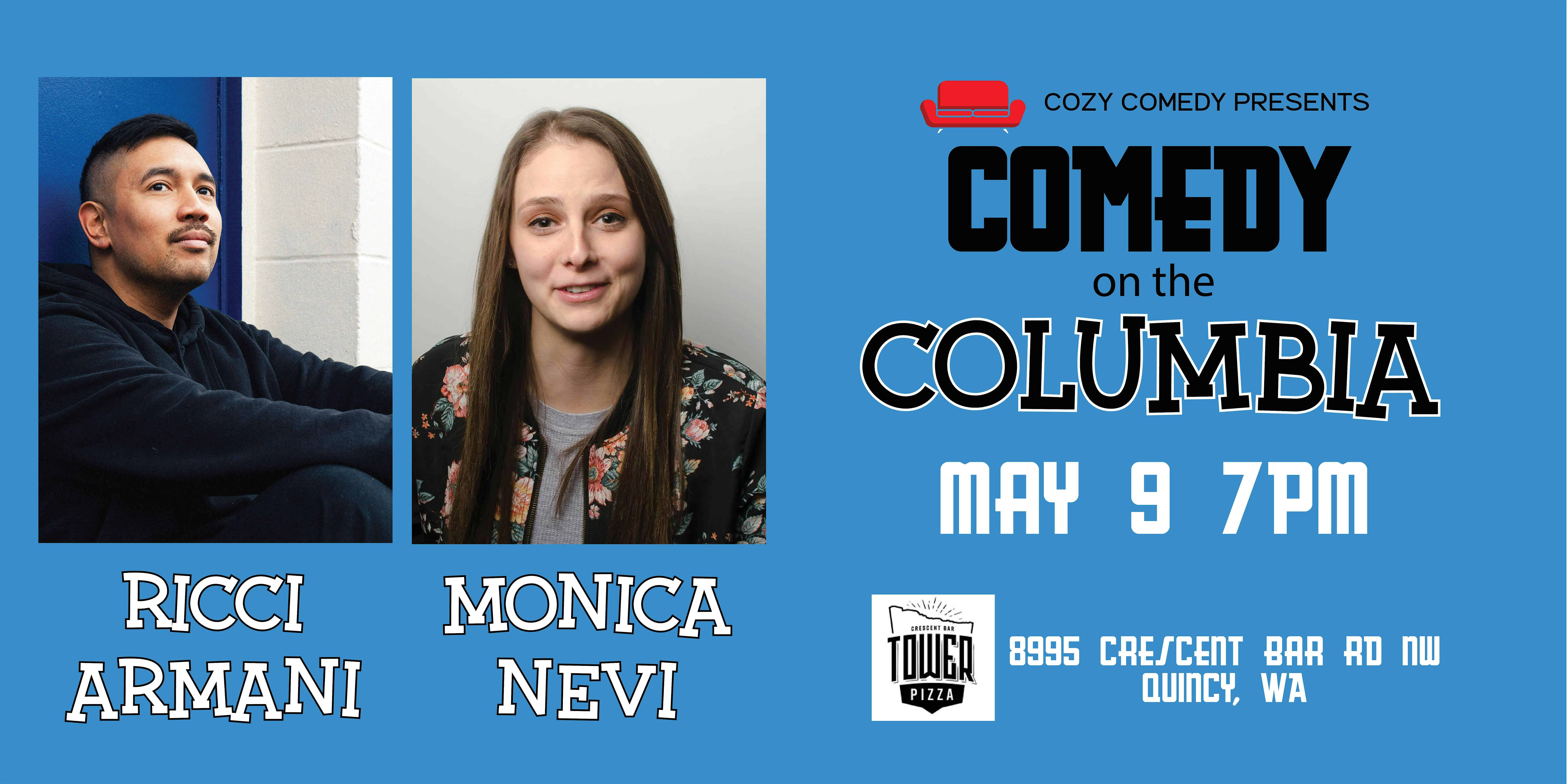 by admin14Feb Comedy on the Columbia: Monica Nevi & Ricci Armani! at Tower Pizza – Quincy, WA Comedy on the Columbia: Monica Nevi & Ricci Armani! at Tower Pizza – Quincy, WA 1 1 people viewed this event. Cozy Comedy returns to Crescent Bar with another DOUBLE headliner show! Monica Nevi & Ricci Armani take the stage! Tickets-RSVP Link Date And Time Sunday, May 10th, 2026 02:00 AM (PST) Venue Tower Pizza Location 8995 Crescent Bar Road Northwest, Quincy, WA 98848 Event Types Concert or PerformancePerforming & Visual Arts Event Category Washington Share With Friends Facebook Twitter Linkedin Xing Pinterest Share This Post: