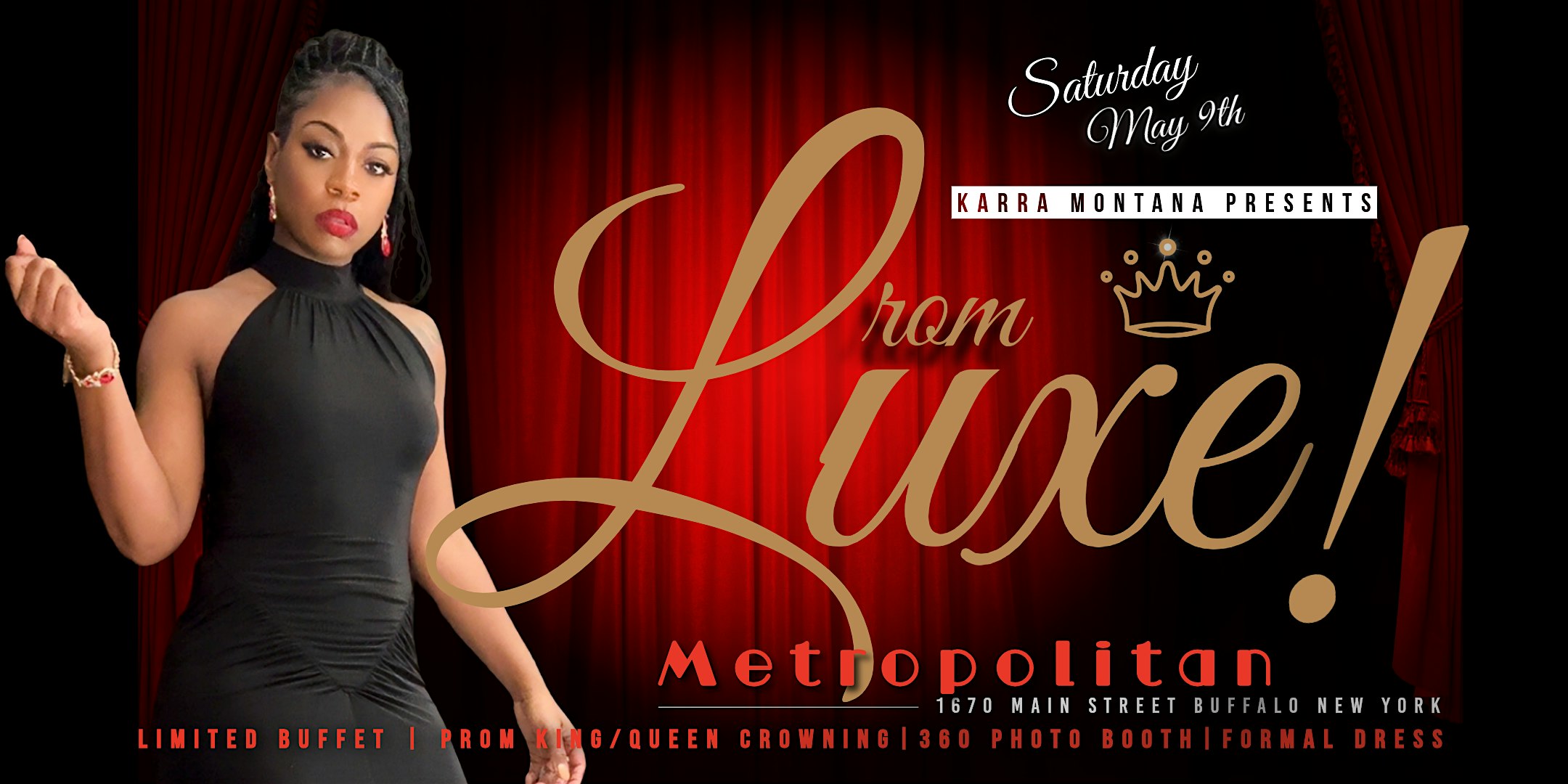 by admin13Feb Karra’s Prom Luxe 2026 at Metropolitan – Buffalo, NY Karra’s Prom Luxe 2026 at Metropolitan – Buffalo, NY 3 3 people viewed this event. Get ready to shine and dance the night away at Karra’s Prom Luxe 2026 – the ultimate glam night! Tickets-RSVP Link Date And Time Sunday, May 10th, 2026 01:00 AM (PST) Venue Metropolitan Location 1670 Main Street, Buffalo, NY 14209 Event Types Fashion & BeautyParty or Social Gathering Event Category BuffaloNew York Share With Friends Facebook Twitter Linkedin Xing Pinterest Share This Post:
