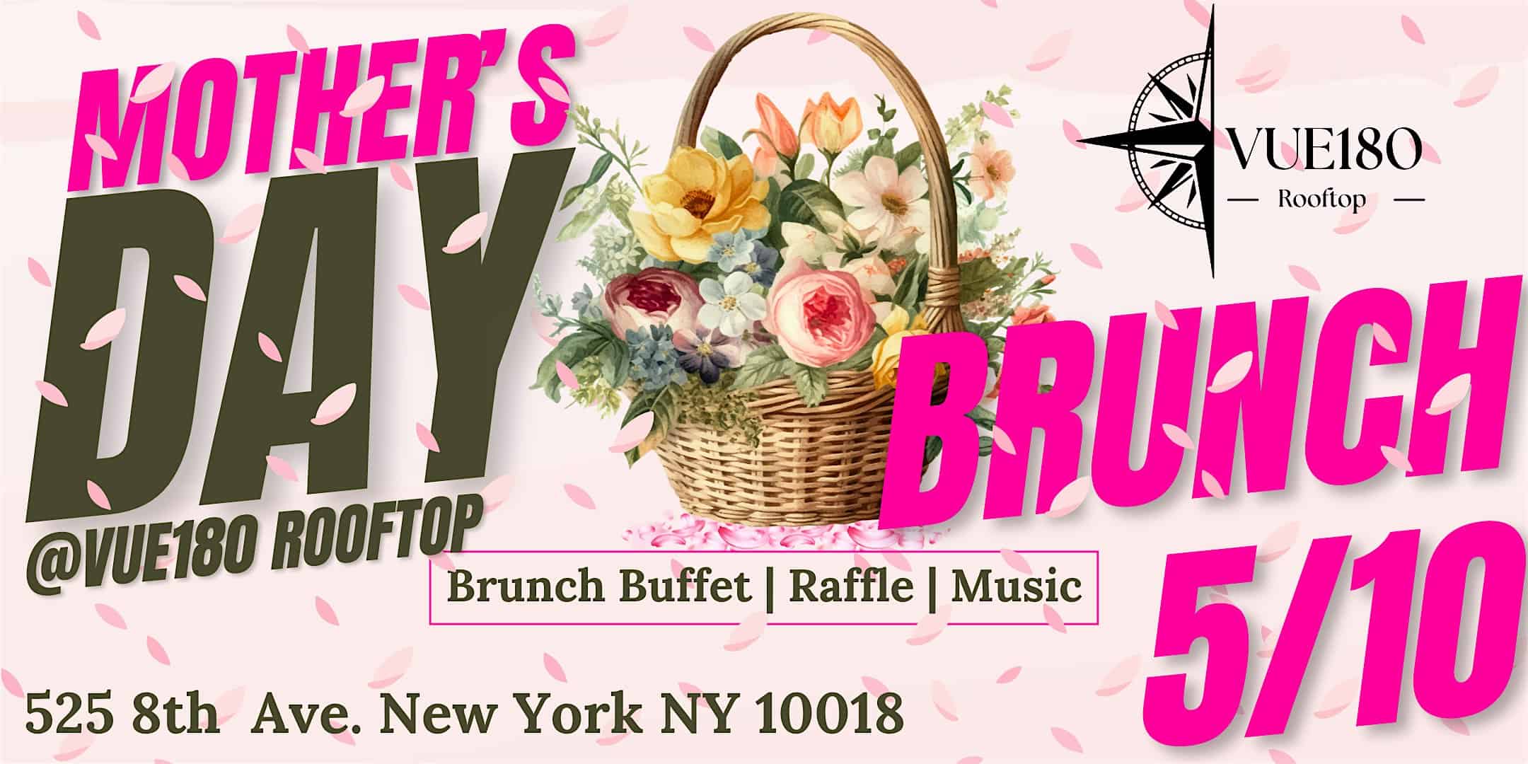 by admin14Feb Mothers Day Brunch at Vue 180 Rooftop Bar & Lounge – New York, NY Mothers Day Brunch at Vue 180 Rooftop Bar & Lounge – New York, NY 1 1 people viewed this event. Celebrate Mom with tasty bites and good vibes at our cozy Mothers Day Brunch! Tickets-RSVP Link Date And Time Sunday, May 10th, 2026 03:00 PM (PST) Venue Vue 180 Rooftop Bar & Lounge Location 525 8th Avenue, New York, NY 10018 Event Types Food & Drink Event Category New YorkNew York City Share With Friends Facebook Twitter Linkedin Xing Pinterest Share This Post: