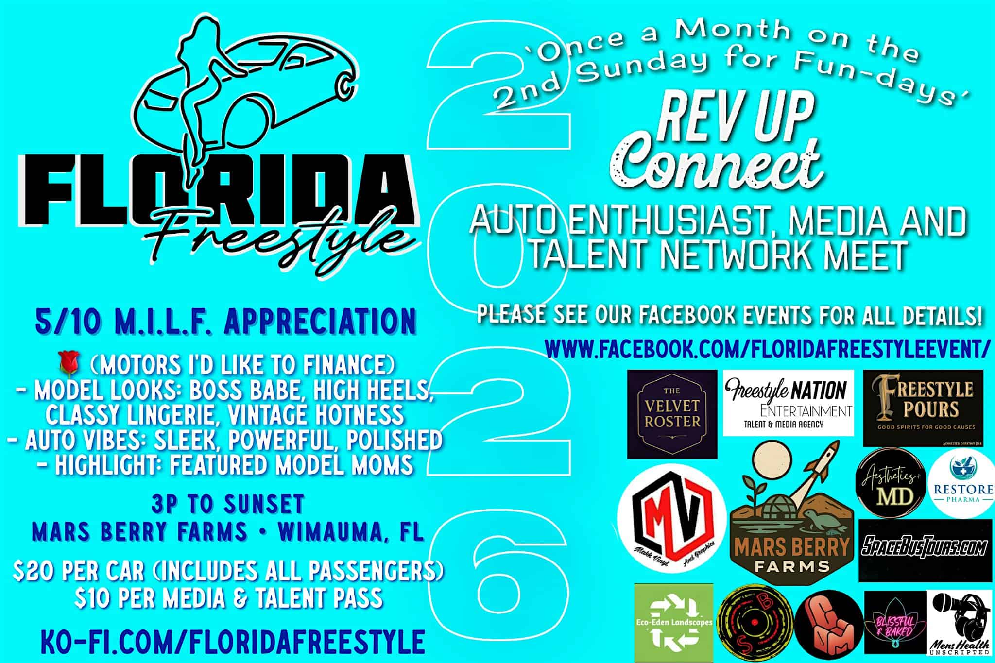 by admin14Feb REV UP CONNECT “M.I.L.F. Appreciation” by Florida Freestyle at 5010 Ruth Morris Rd – Wimauma, FL REV UP CONNECT “M.I.L.F. Appreciation” by Florida Freestyle at 5010 Ruth Morris Rd – Wimauma, FL 1 1 people viewed this event. ✨ Monthly Themes, Styled Scenes: Each Rev Up Connect is networking, content creation & good vibes all wrapped in a beautiful Sunday Sunset. Tickets-RSVP Link Date And Time Sunday, May 10th, 2026 07:00 PM (PST) Venue 5010 Ruth Morris Rd Location 5010 Ruth Morris Road, Wimauma, FL 33598 Event Types Party or Social Gathering Event Category Florida Share With Friends Facebook Twitter Linkedin Xing Pinterest Share This Post: