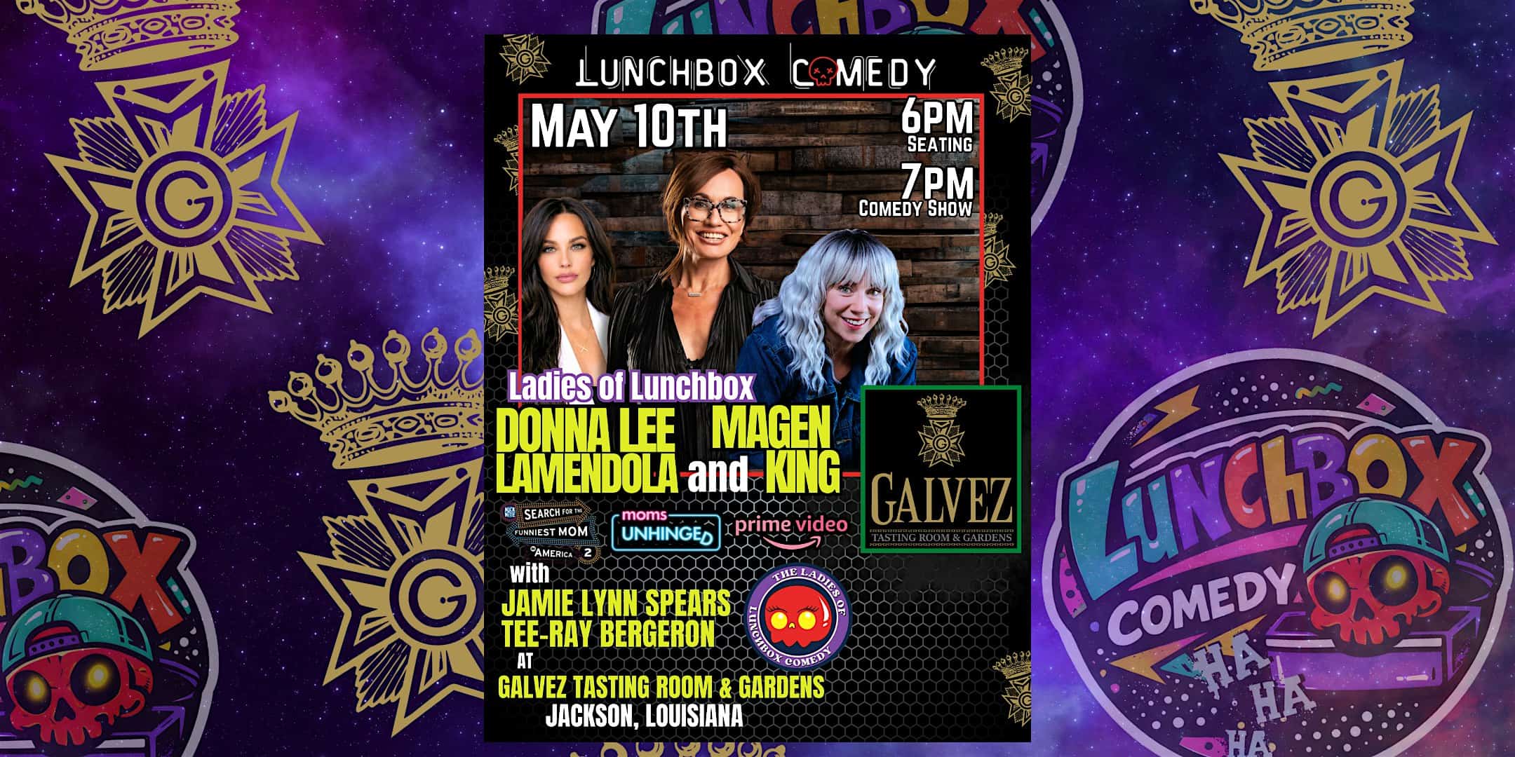 by admin14Feb Ladies of Lunchbox Comedy : Donna Lee Lamendola + Magen King at Galvez Rum at Galvez Rum Tasting Room & Gardens – Jackson, LA Ladies of Lunchbox Comedy : Donna Lee Lamendola + Magen King at Galvez Rum at Galvez Rum Tasting Room & Gardens – Jackson, LA 1 1 people viewed this event. Join us Mother’s Day Weekend with Donna Lee Lamendola and Magen King for a night of comedy at Galvez Rum Distillery!!! Tickets-RSVP Link Date And Time Monday, May 11th, 2026 12:00 AM (PST) Venue Galvez Rum Tasting Room & Gardens Location 1848 Charter Street, Jackson, LA 70748 Event Types Concert or PerformancePerforming & Visual Arts Event Category Louisiana Share With Friends Facebook Twitter Linkedin Xing Pinterest Share This Post: